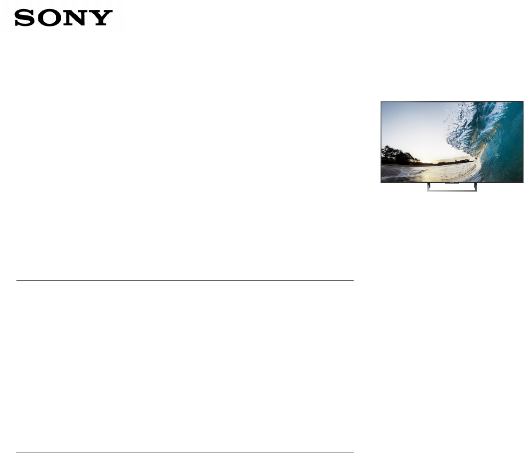 Sony XBR 65X850E User Manual Marketing Specifications XBR65X850E Mksp