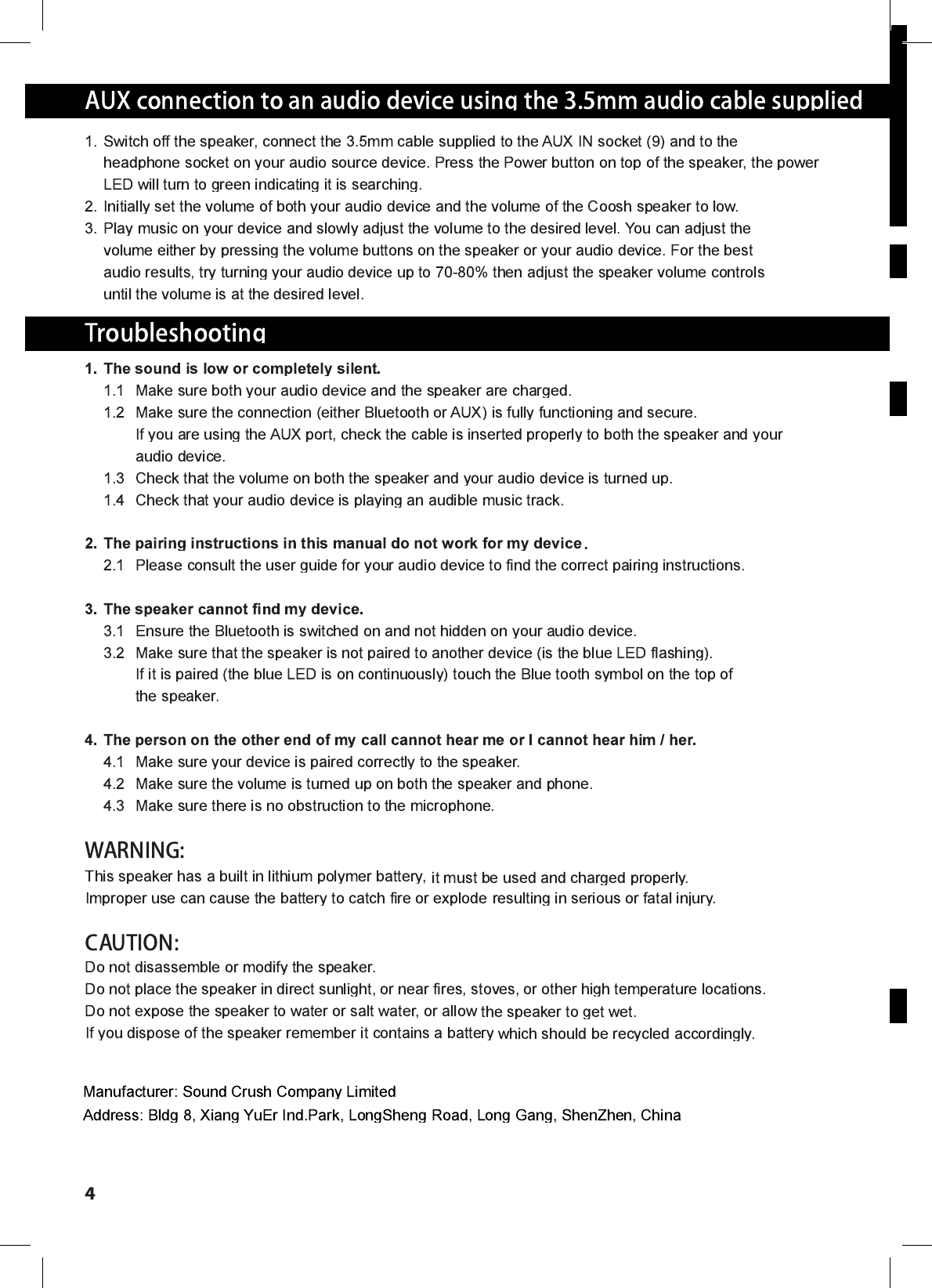 Sound Crush Company Limited Bluetooth Speaker Users Manual