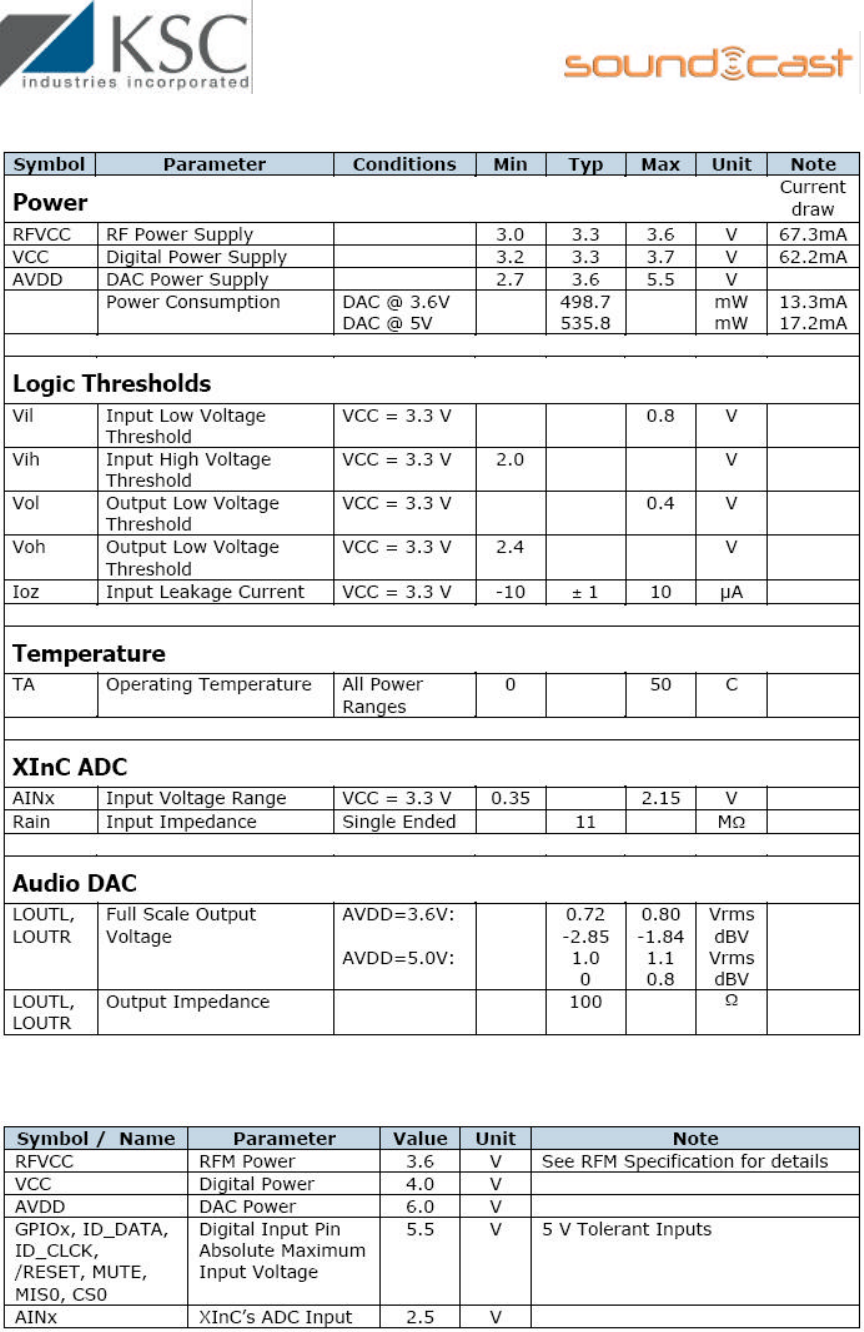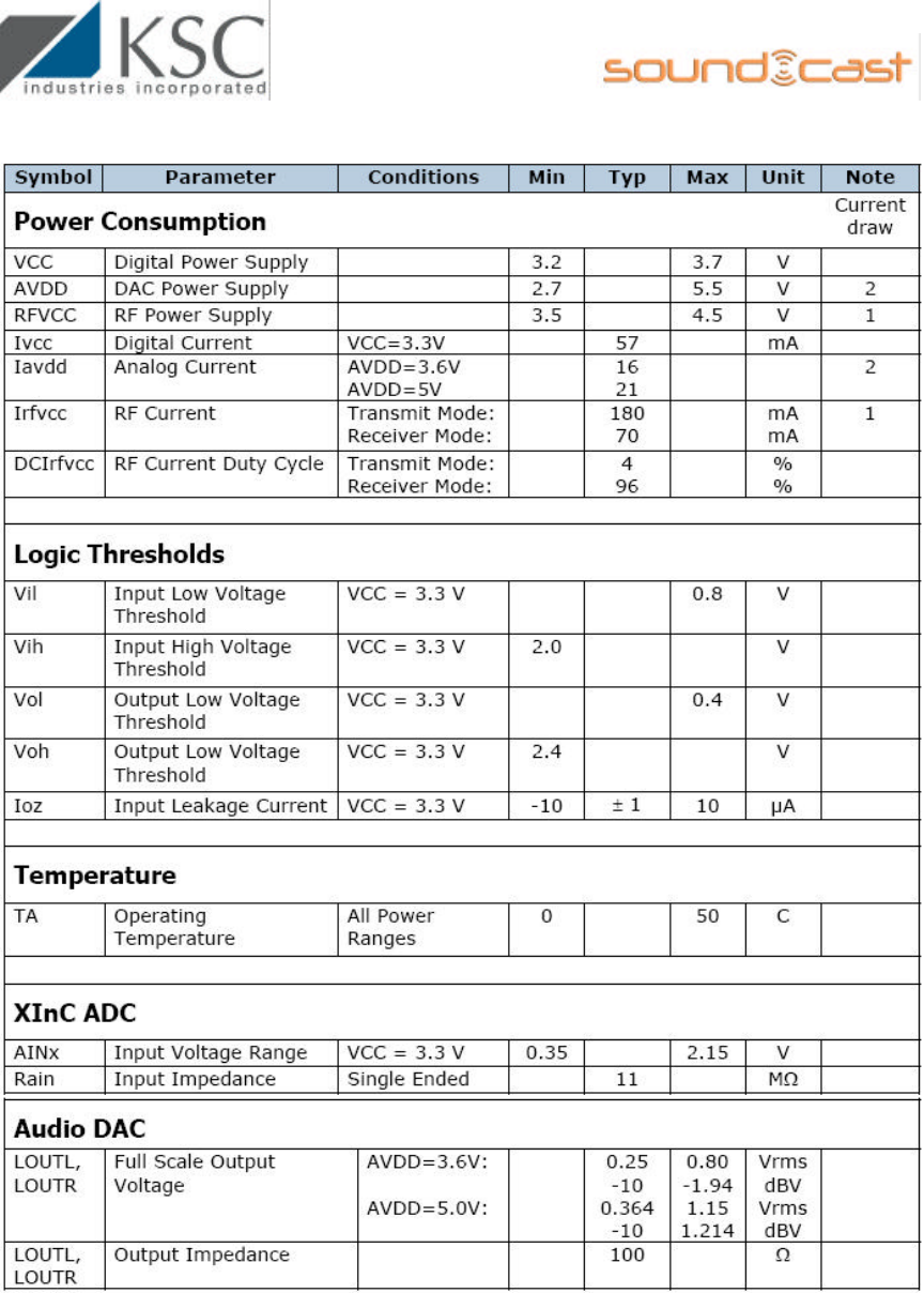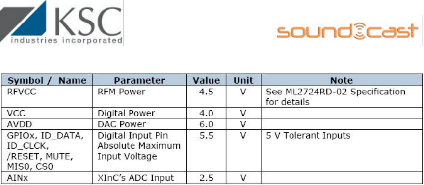 3.4 Absolute Maximum Ratings – SoundCast G2 Receiver
