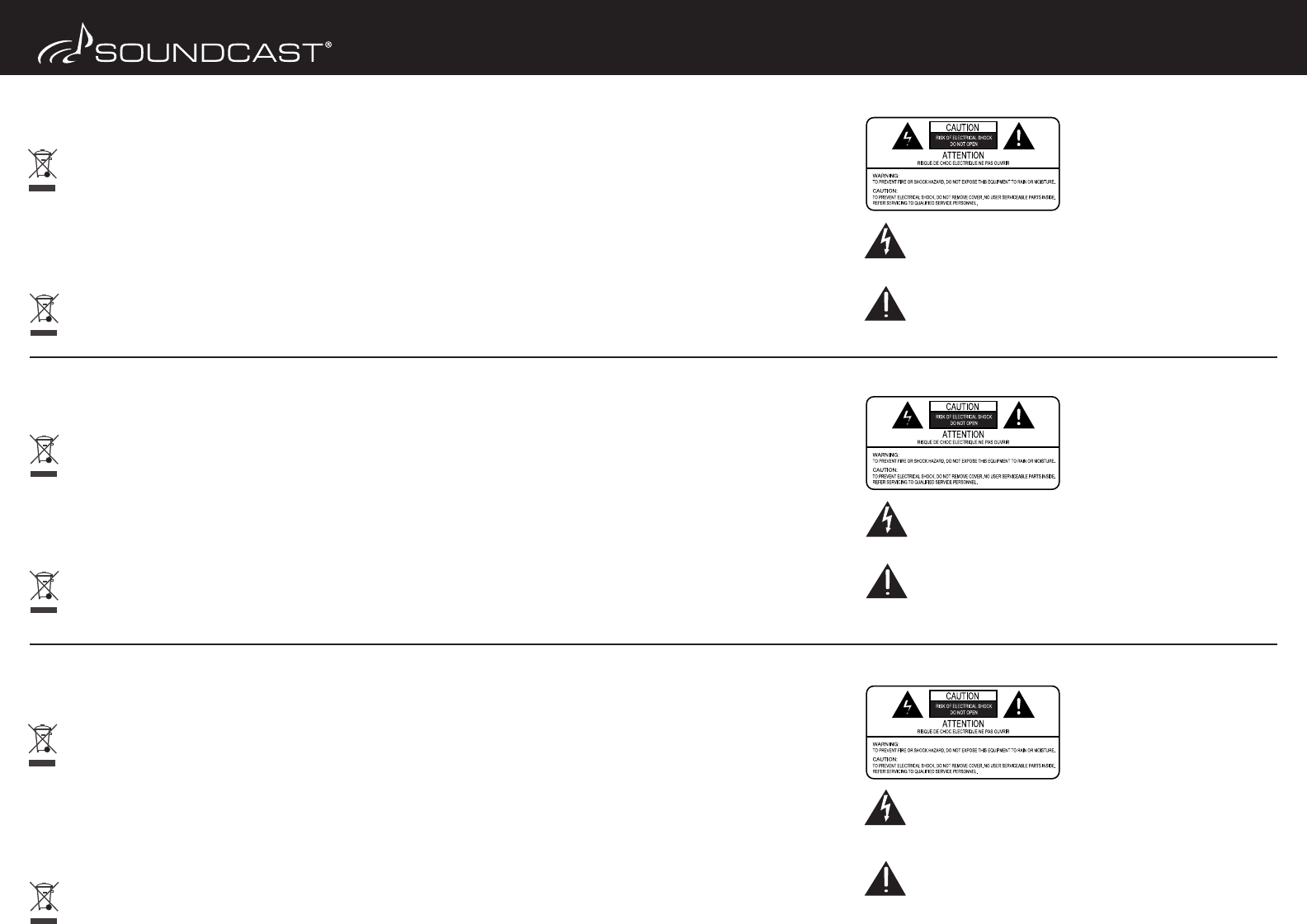 Use only the AC adapter that was supplied by Soundcast Systems.