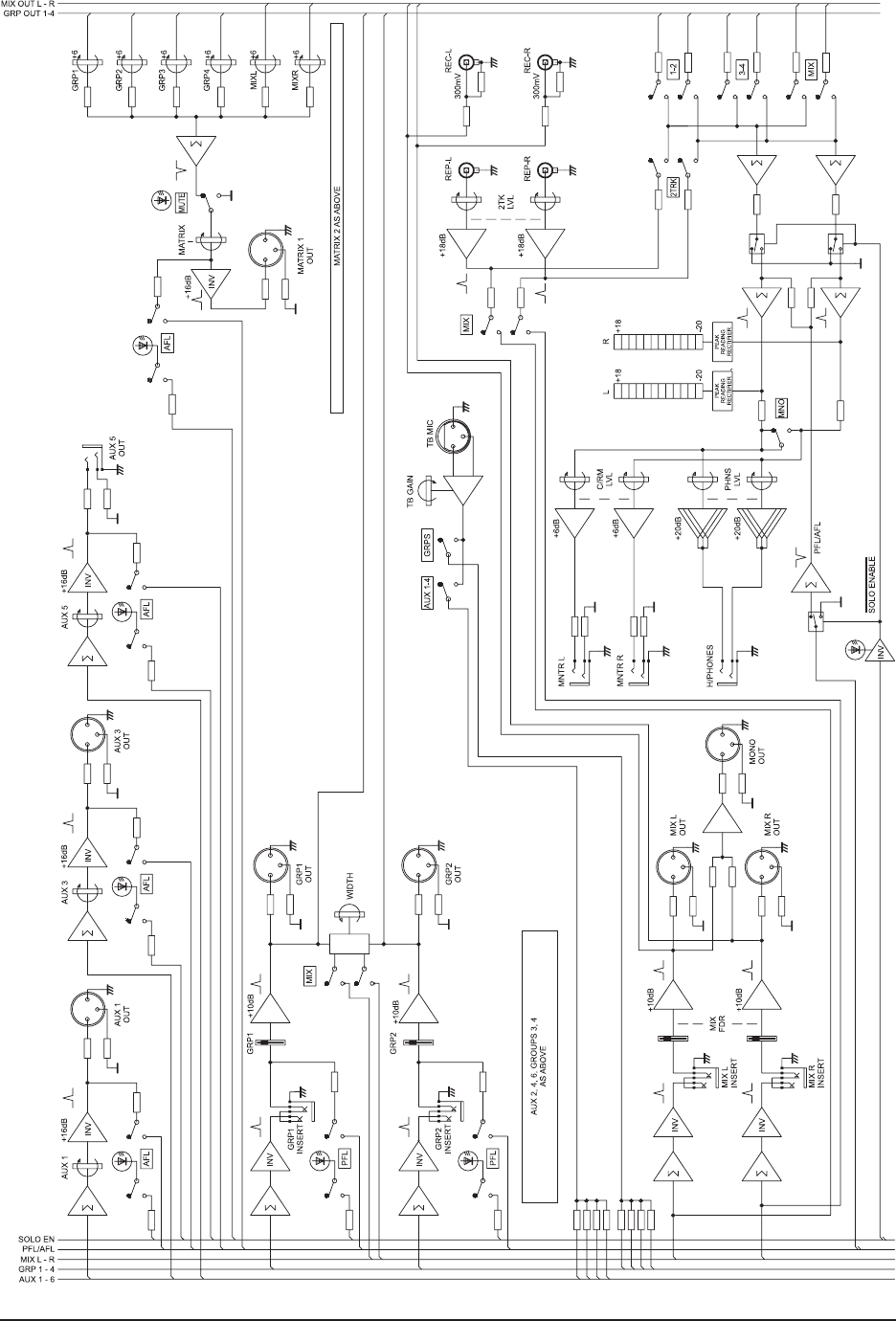 Note: the 2-track input may also be routed directly to the main L-R mix via the 2 TRK TO MIX