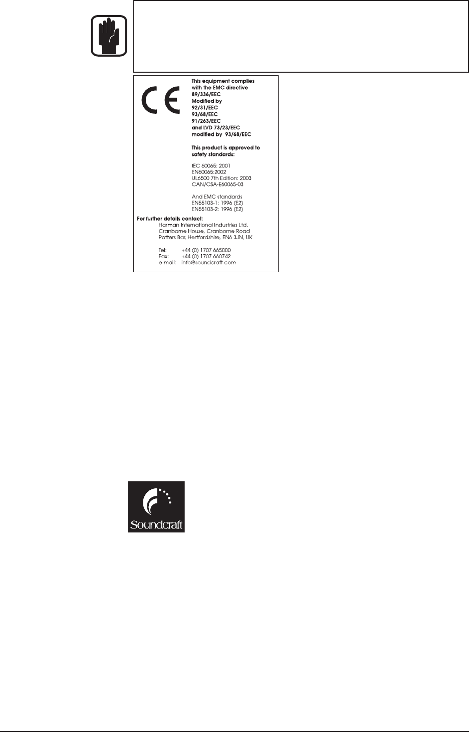 Soundcraft is a trading division of Harman International Industries Ltd. Information in this manual