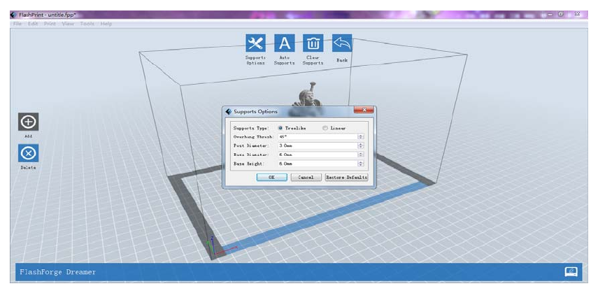 For the experienced 3D printer users, the [Add] and [Delete] buttons are suggested