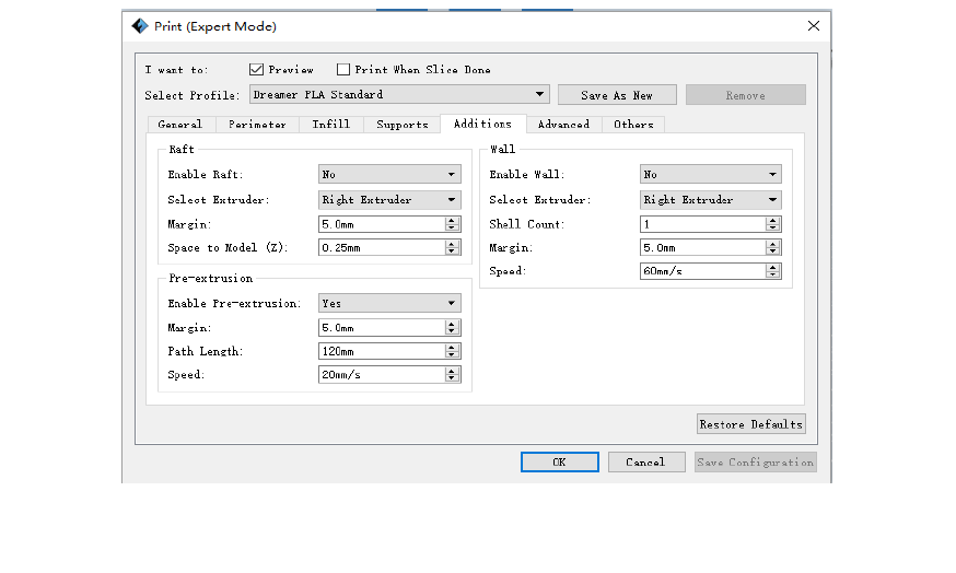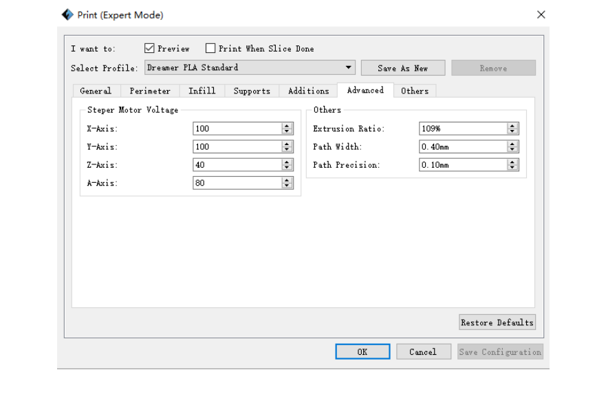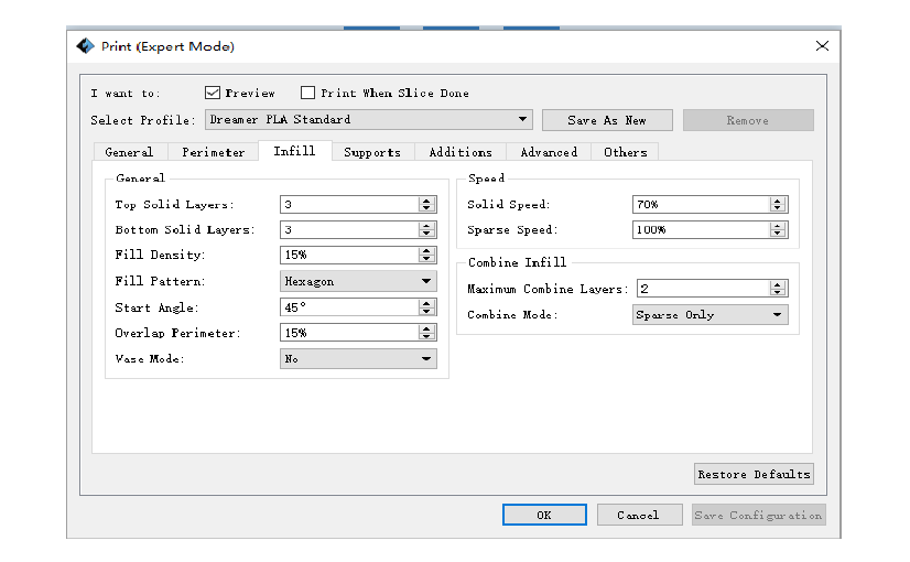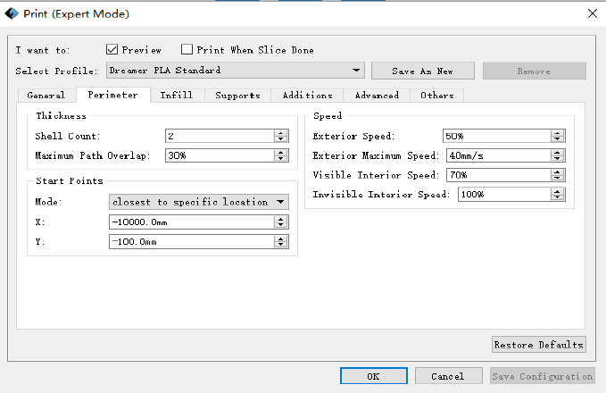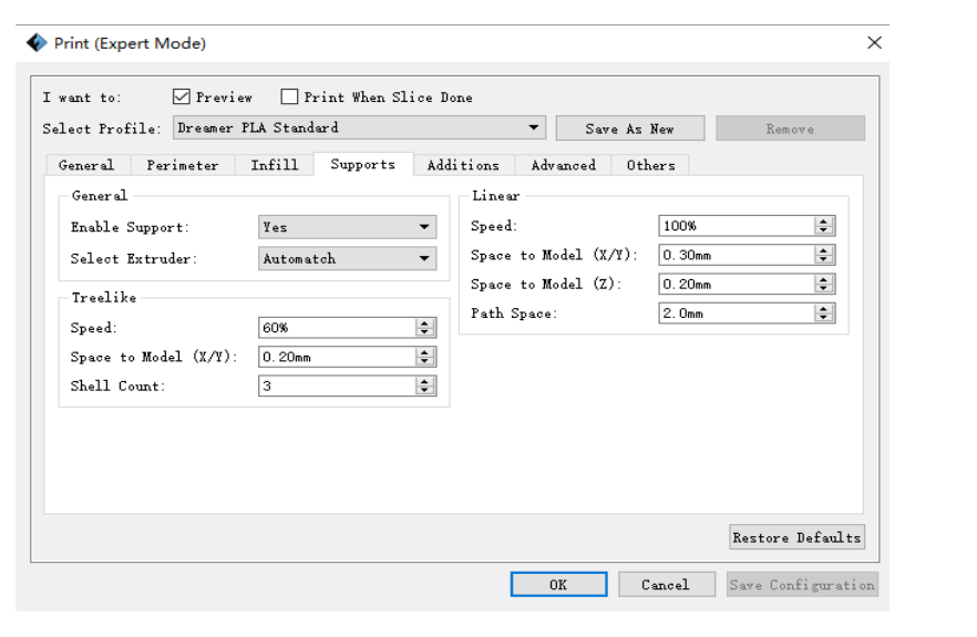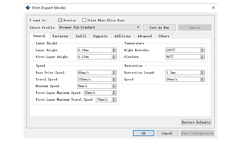 ● Standard (Print Speed 60mm/s Travel Speed 80mm/s)