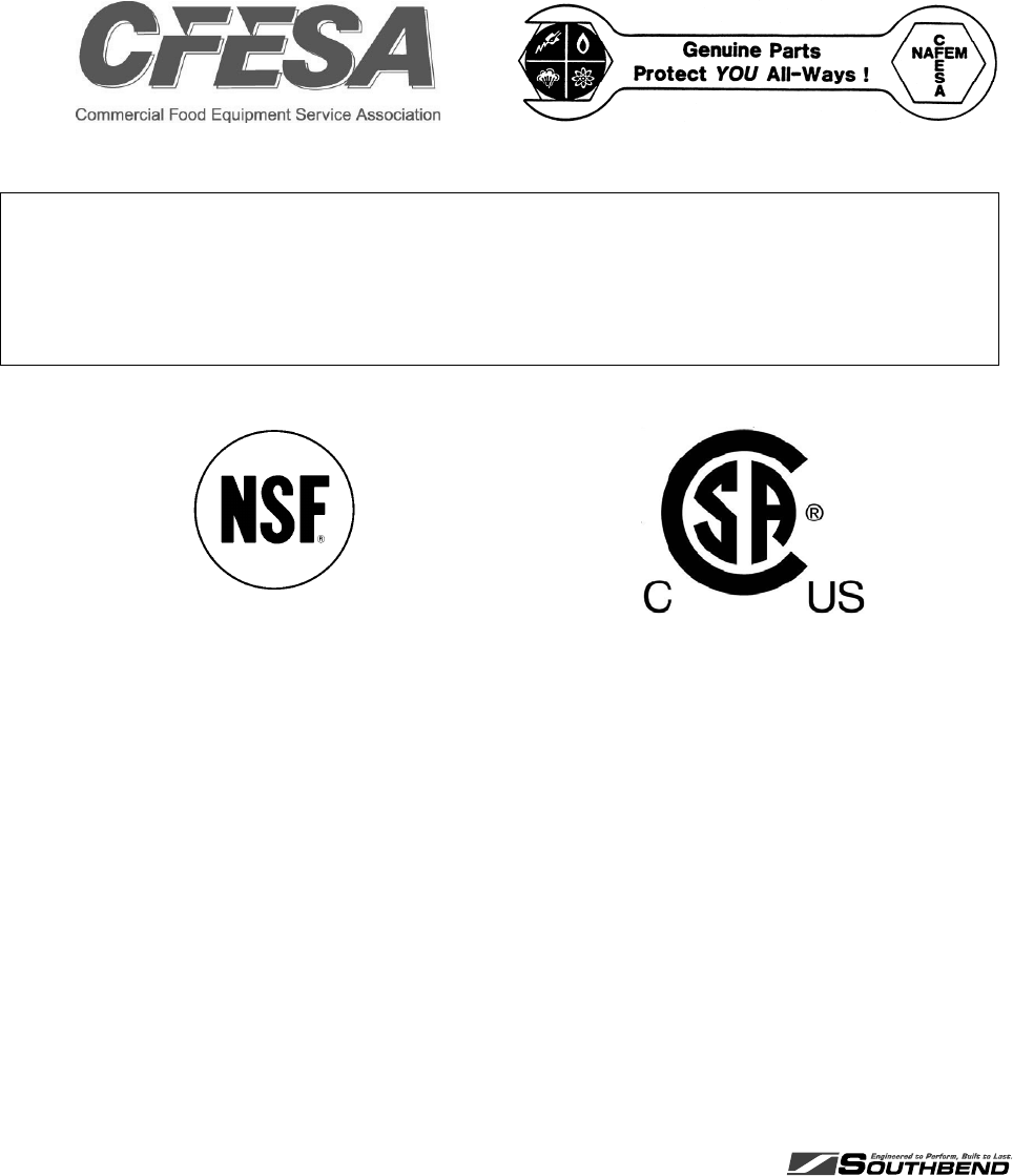You will find that your new equipment, like all Southbend equipment, has been designed and manufactured