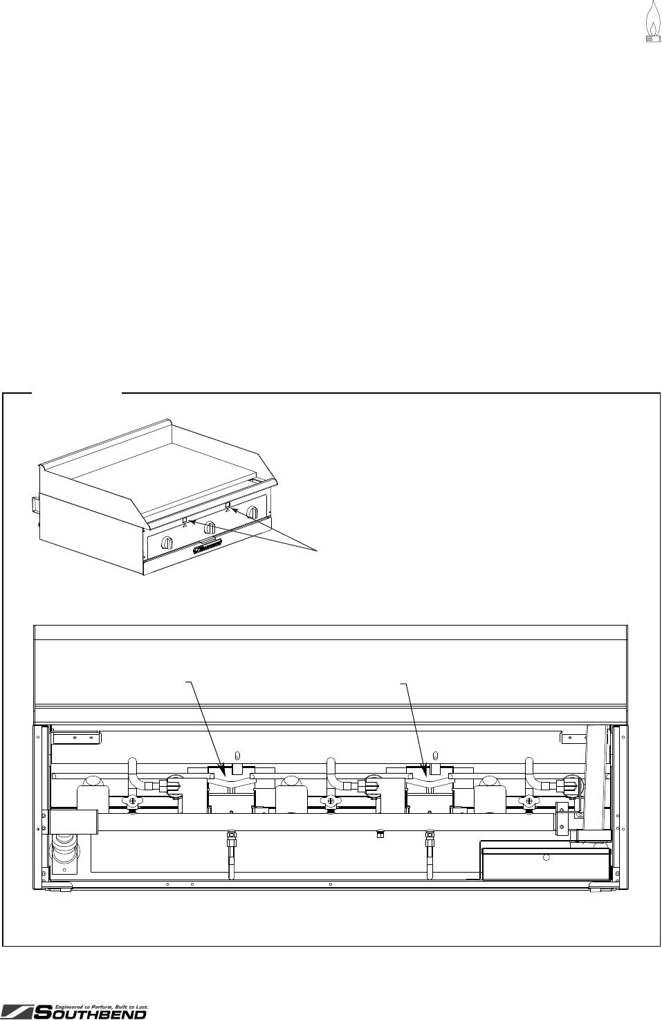 When adjusting the burners of griddle models, note that over-gassed burners DO NOT heat griddles as