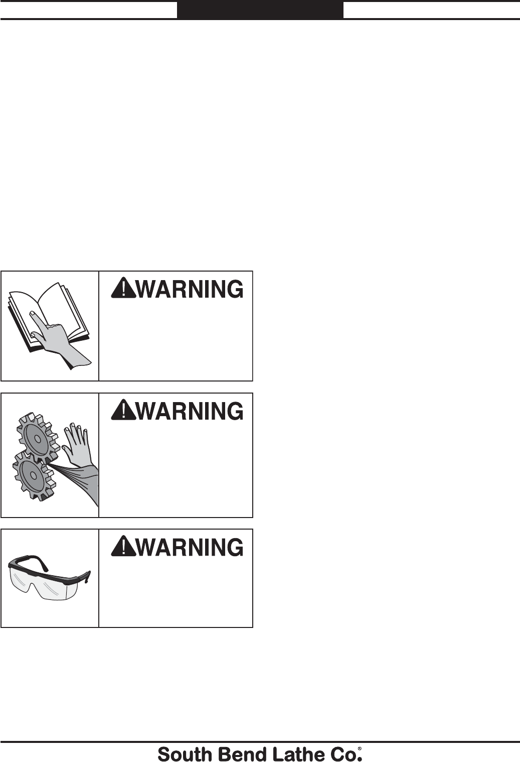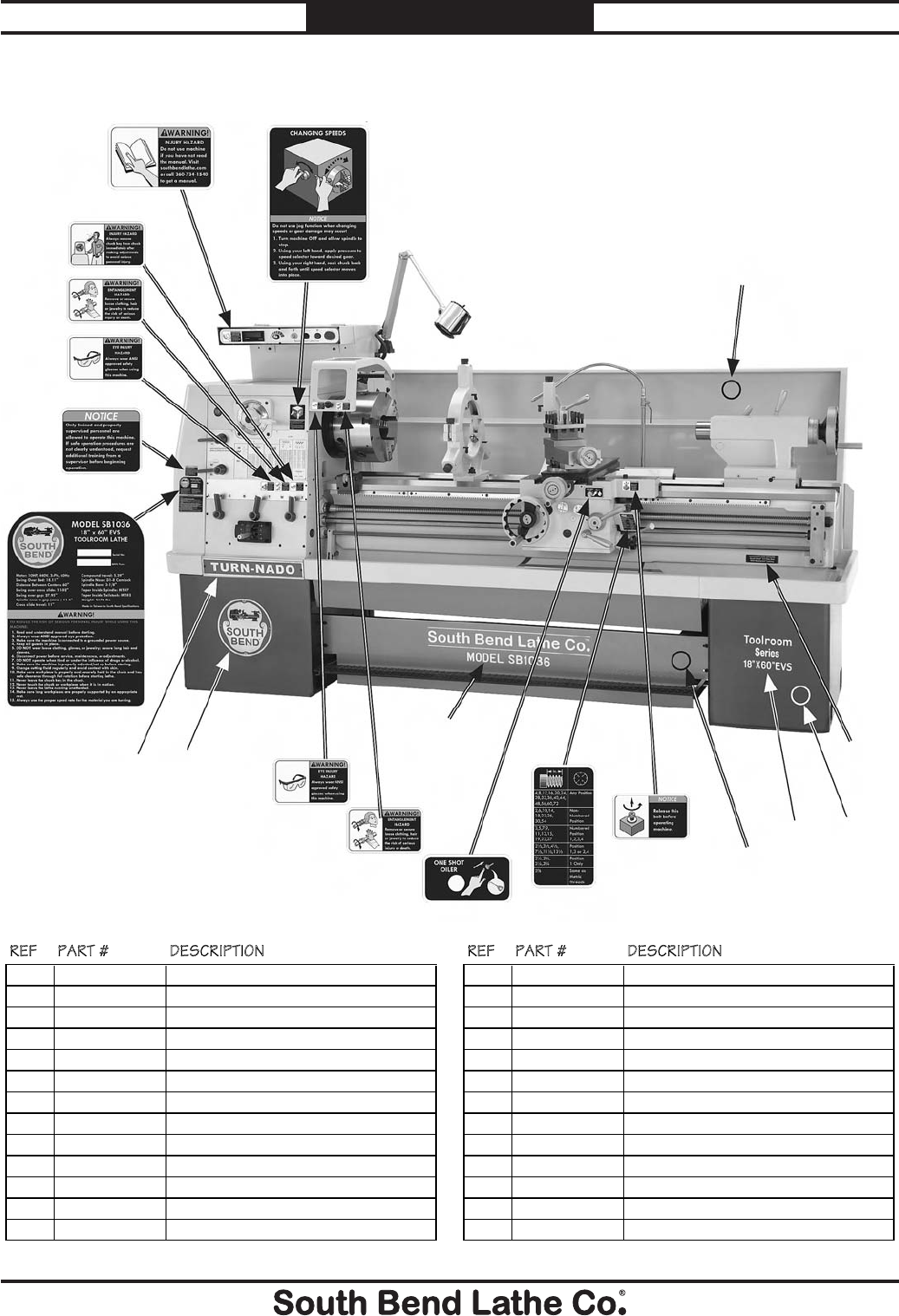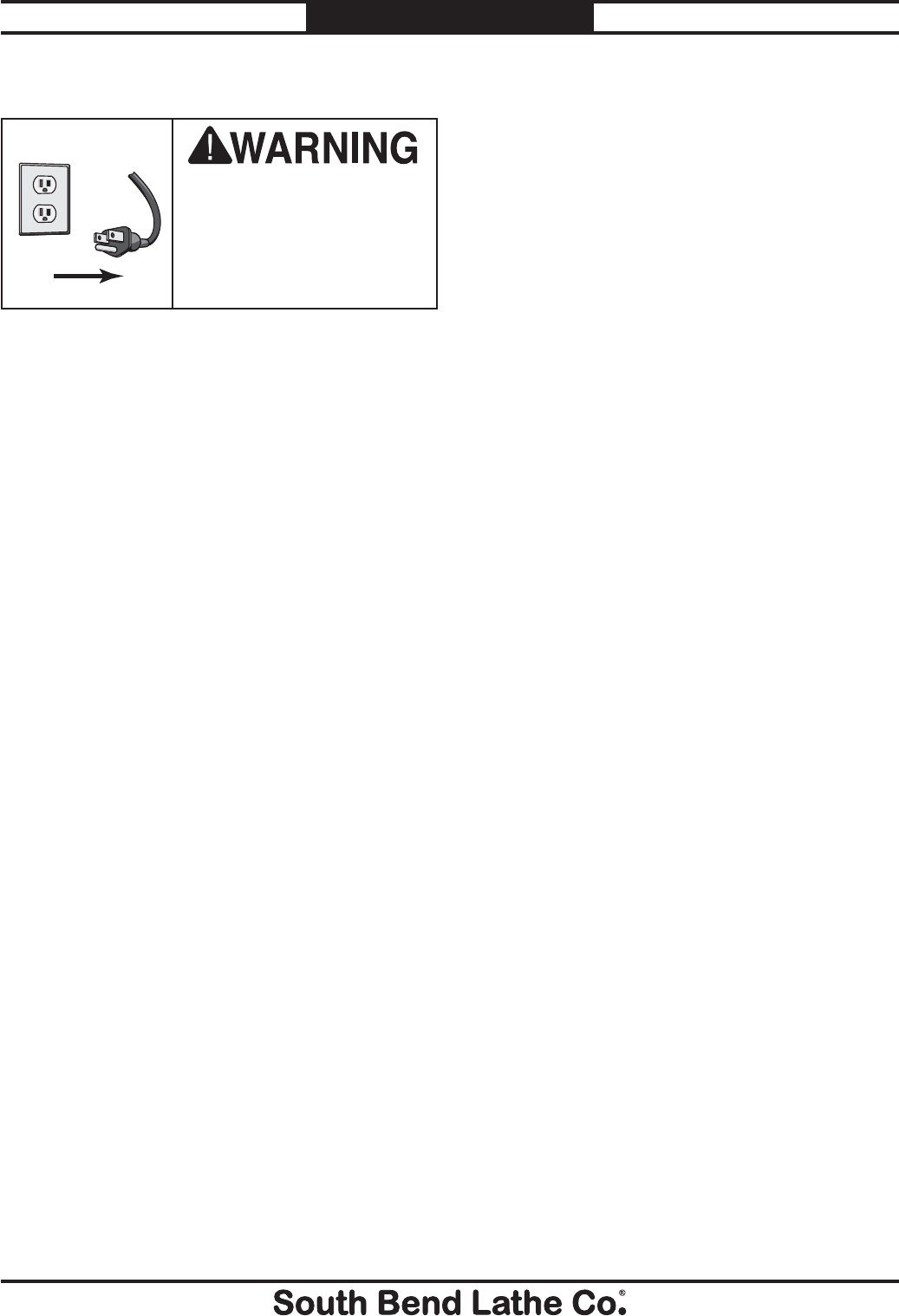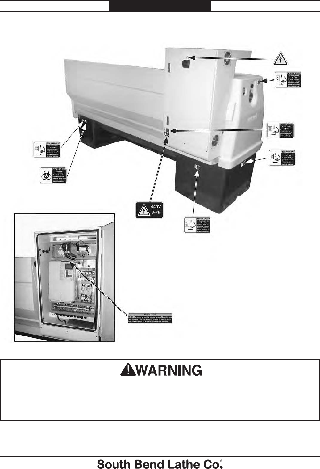 unreadable, REPLACE that label before using the machine again. Contact South Bend Lathe Co. at