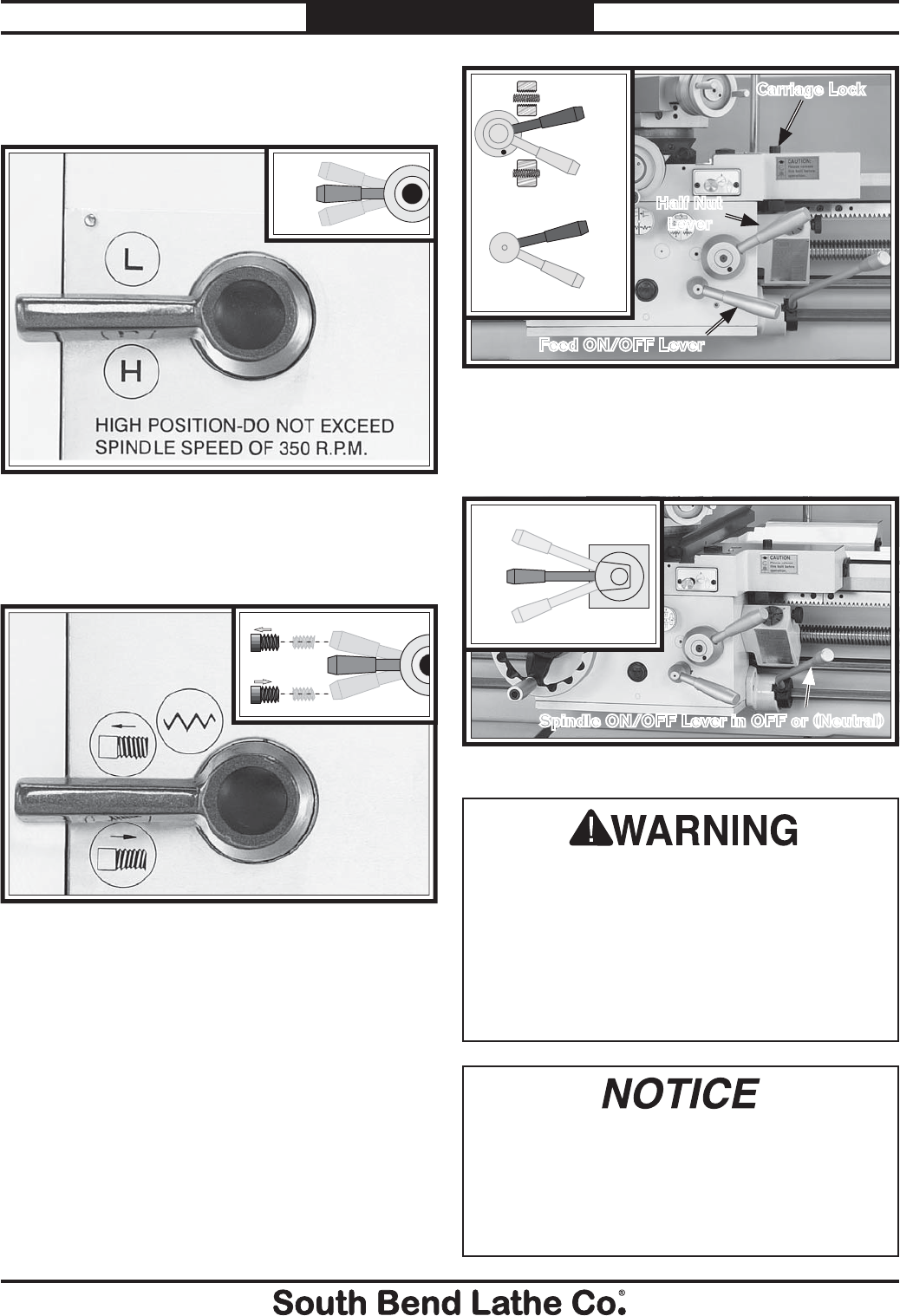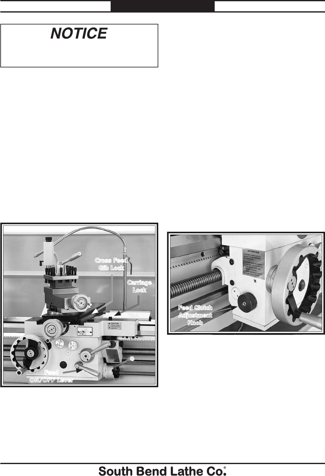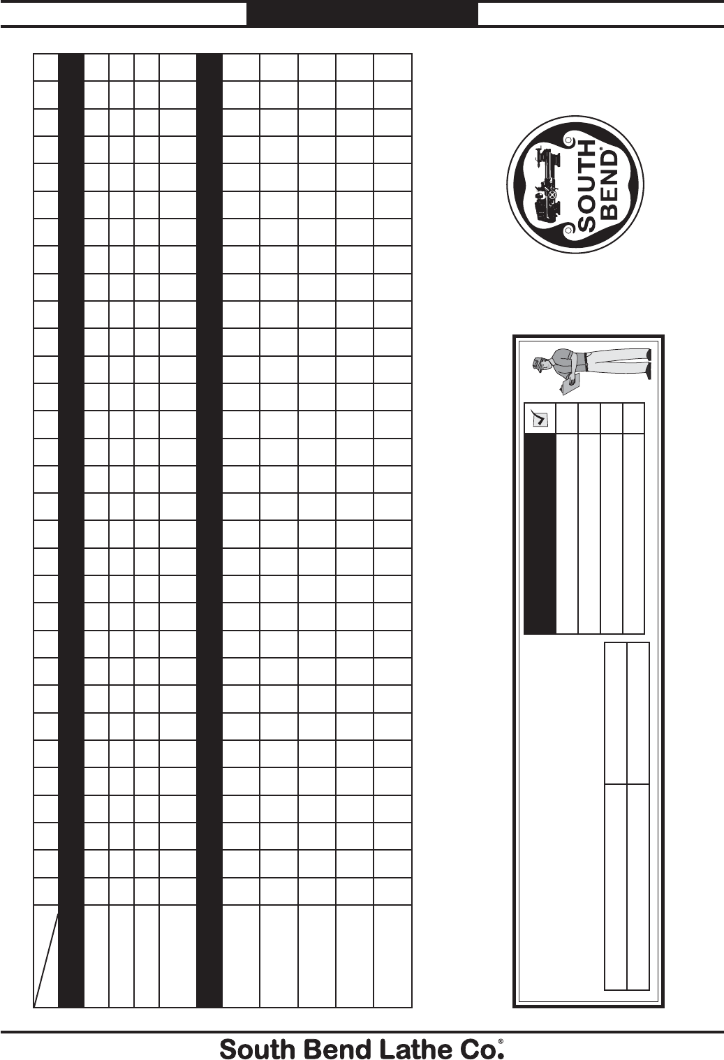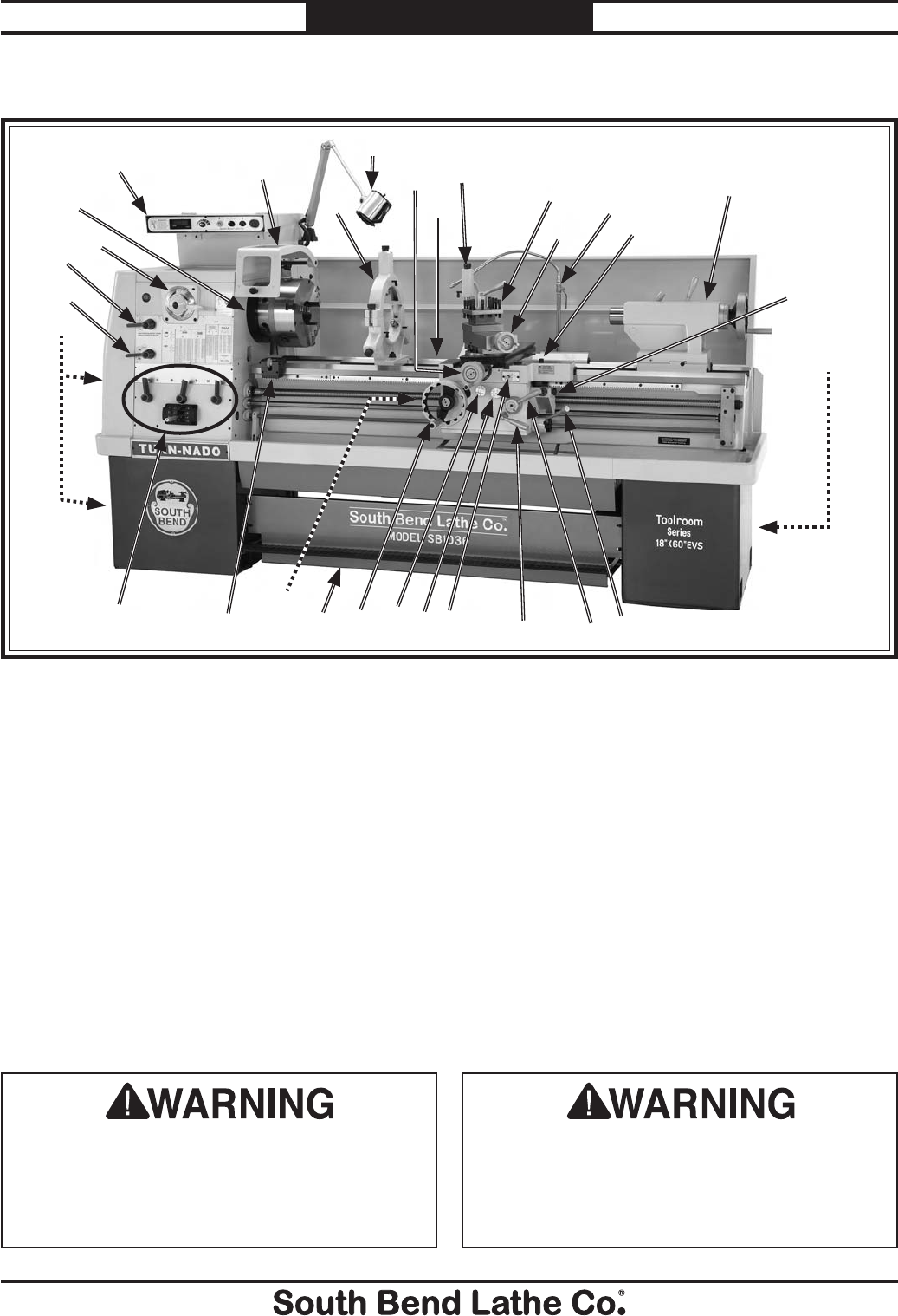 unreadable, REPLACE that label before using the machine again. Contact South Bend Lathe Co. at