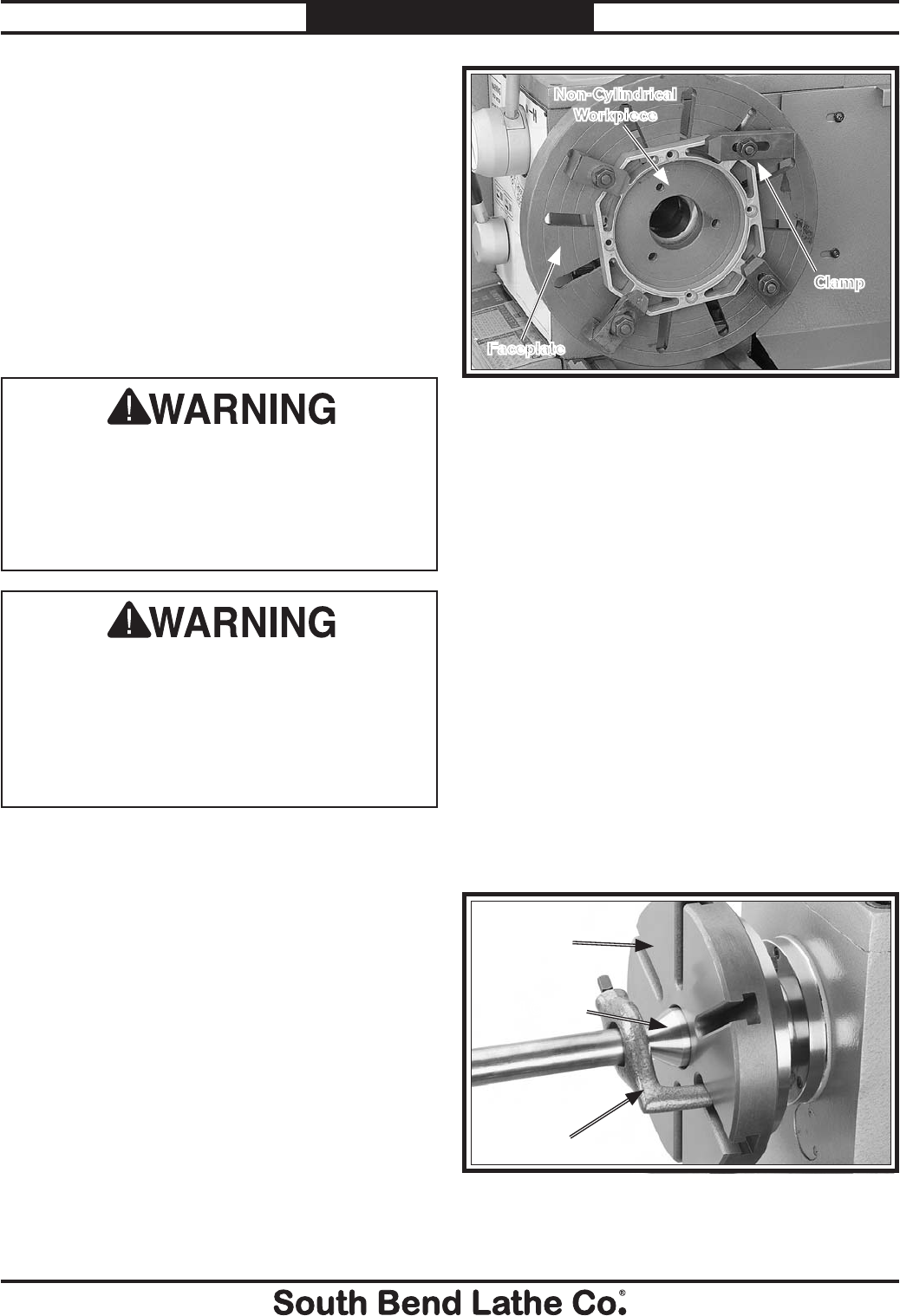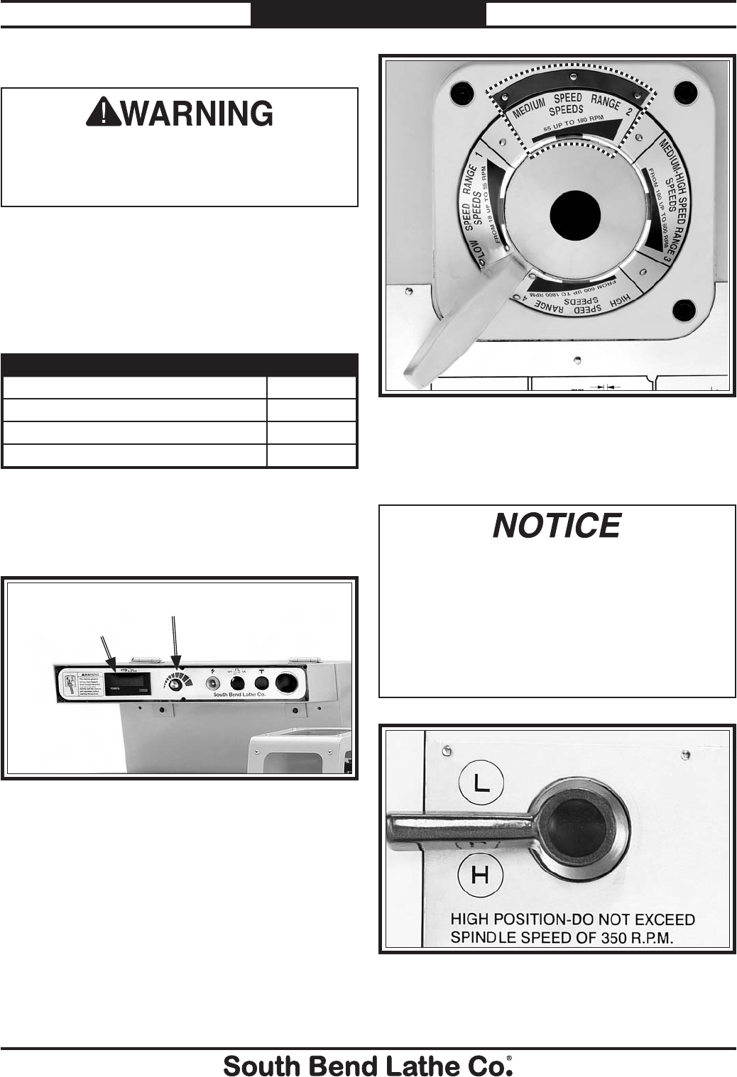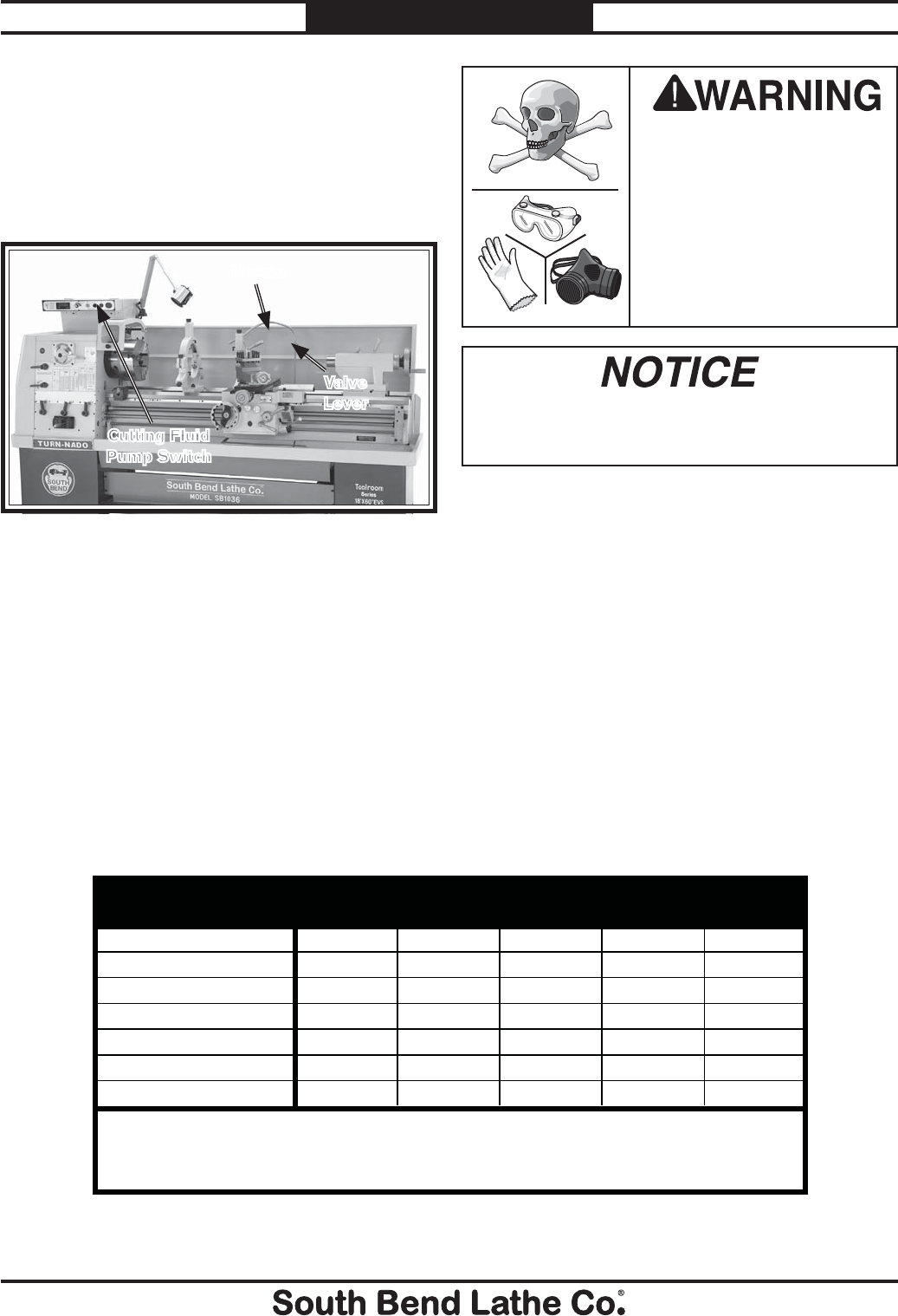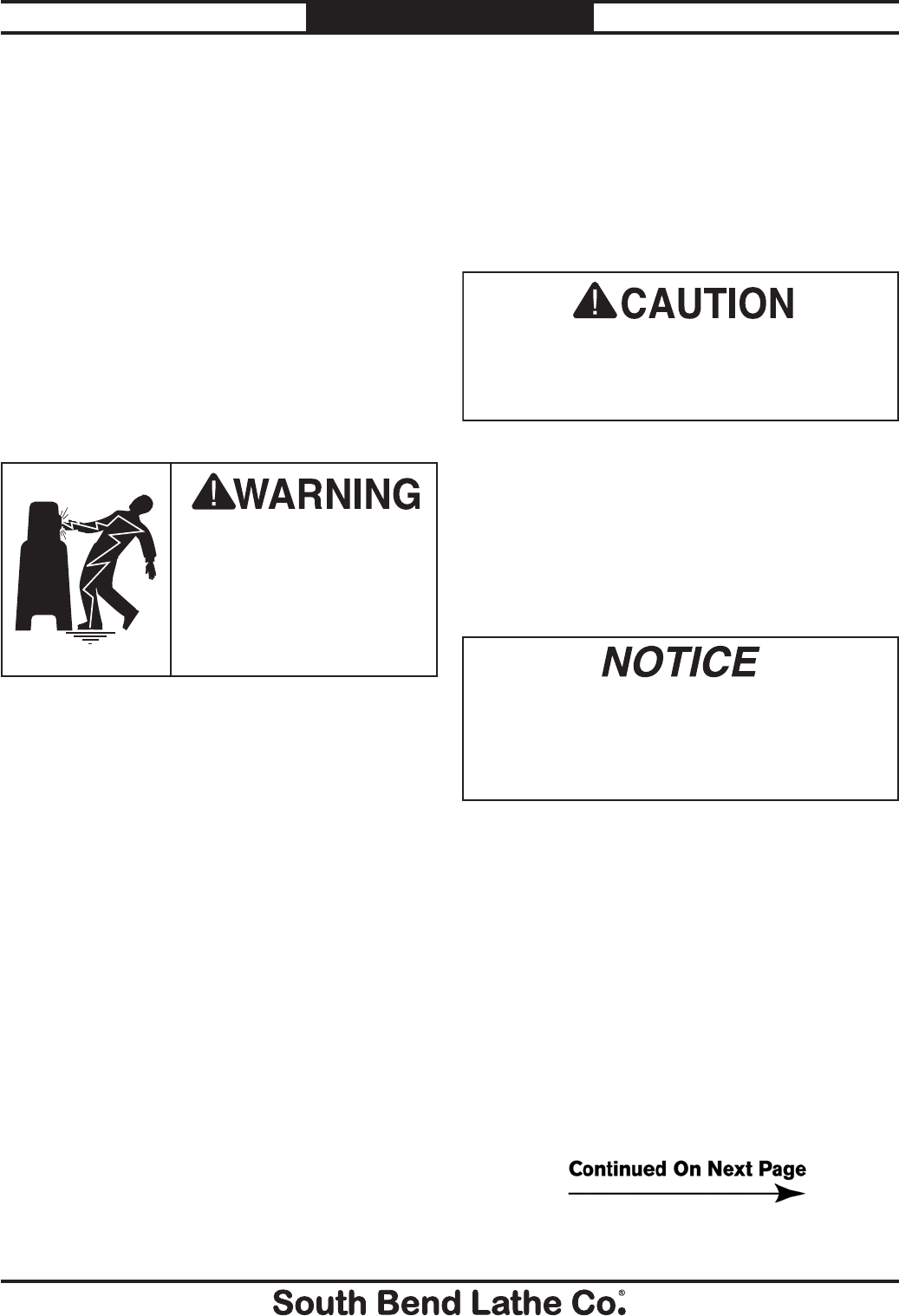 unreadable, REPLACE that label before using the machine again. Contact South Bend Lathe Co. at