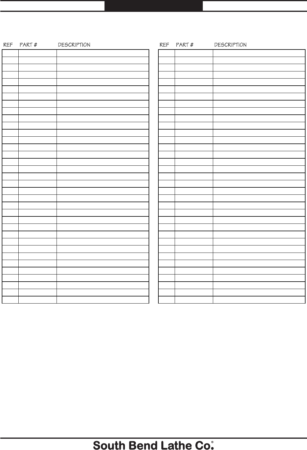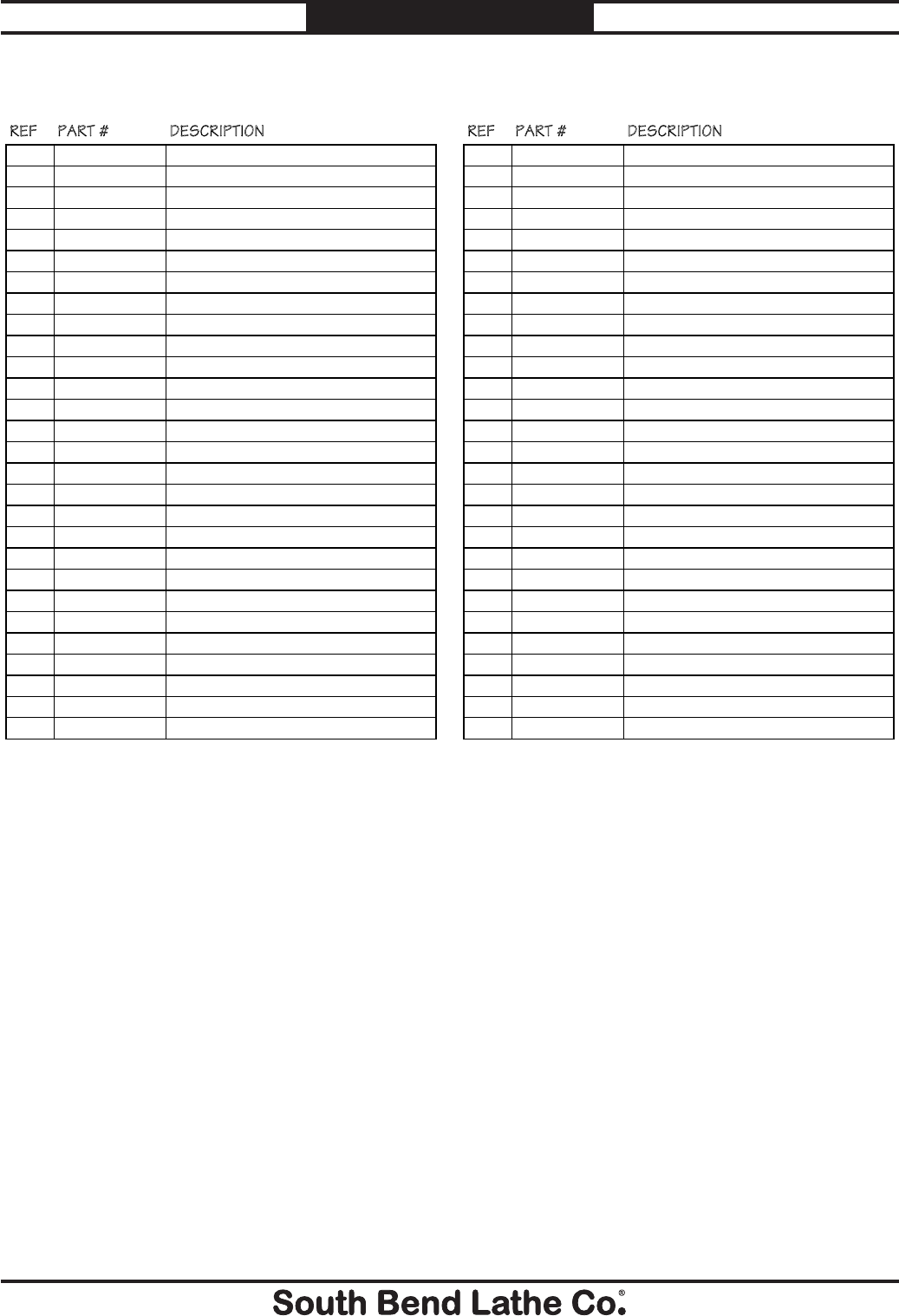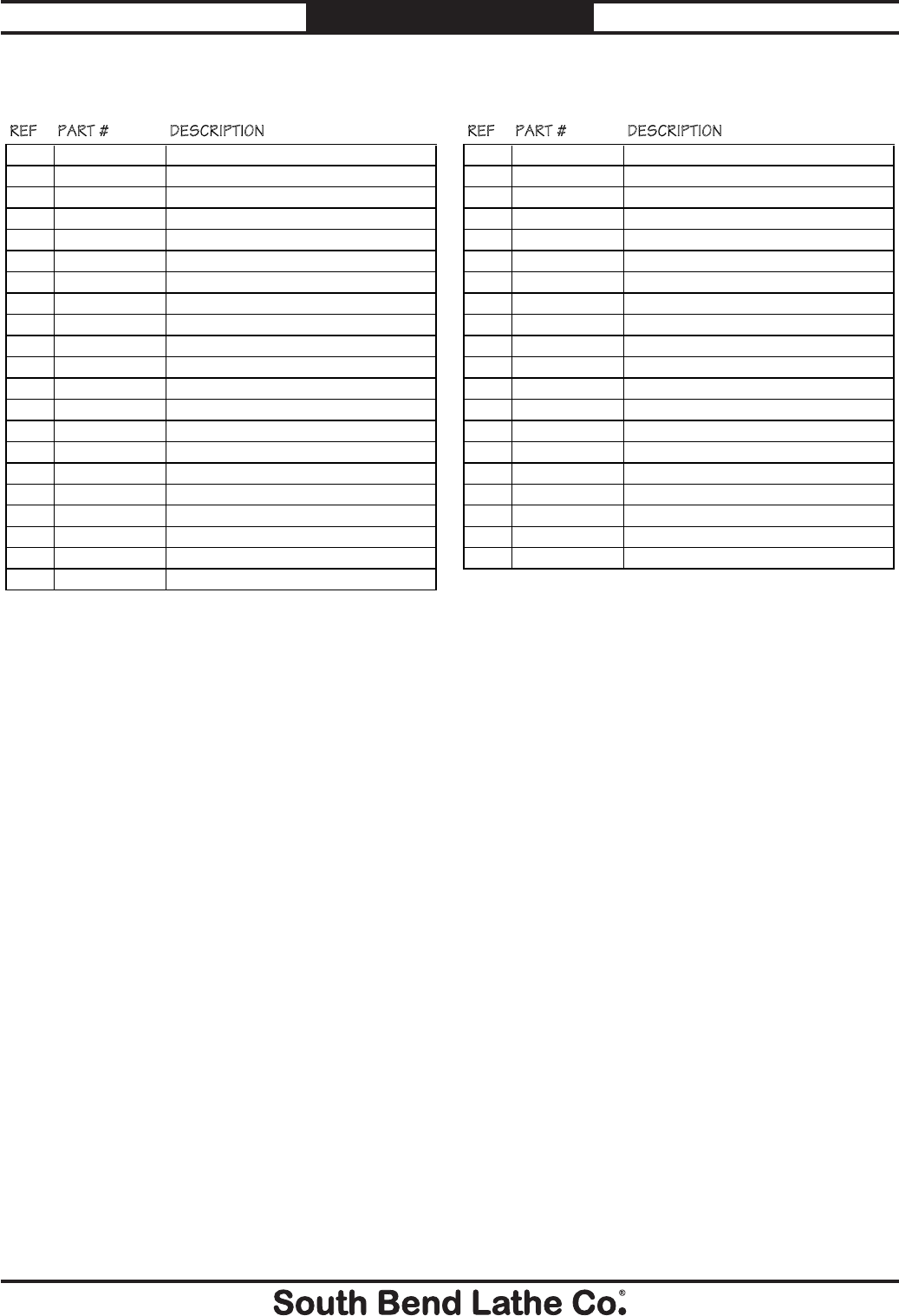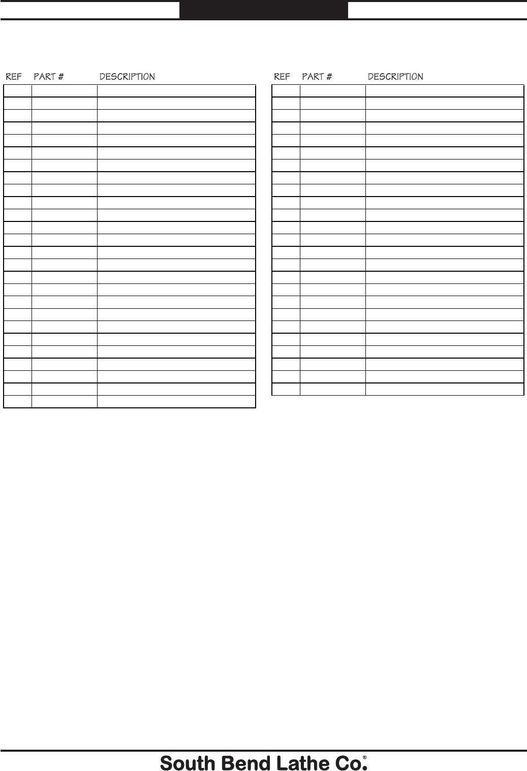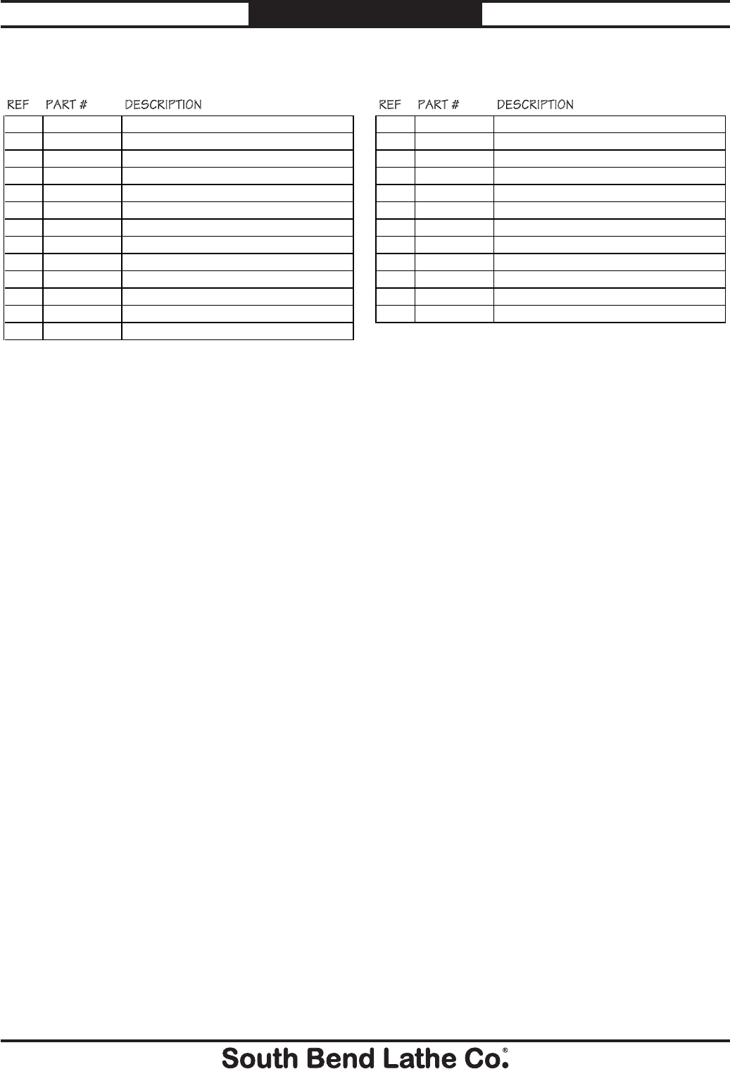 © August, 2010 by South Bend Lathe Co. For Machines Mfg. Since 7/09