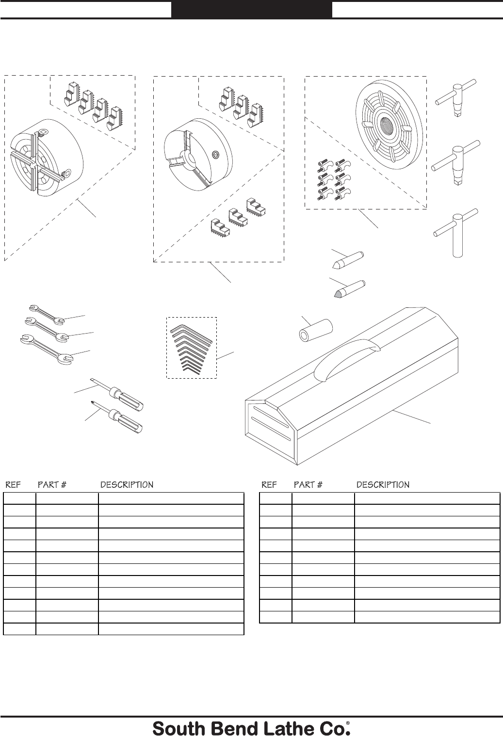 1801 PSB10161801 4-JAW CHUCK 14" ASSEMBLY 1806 PSB10161806 TOOL POST T-WRENCH