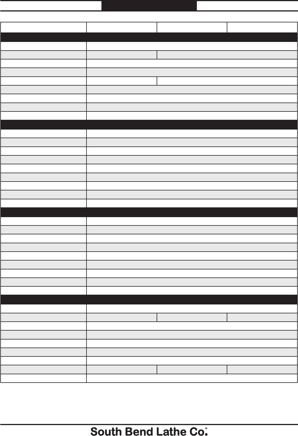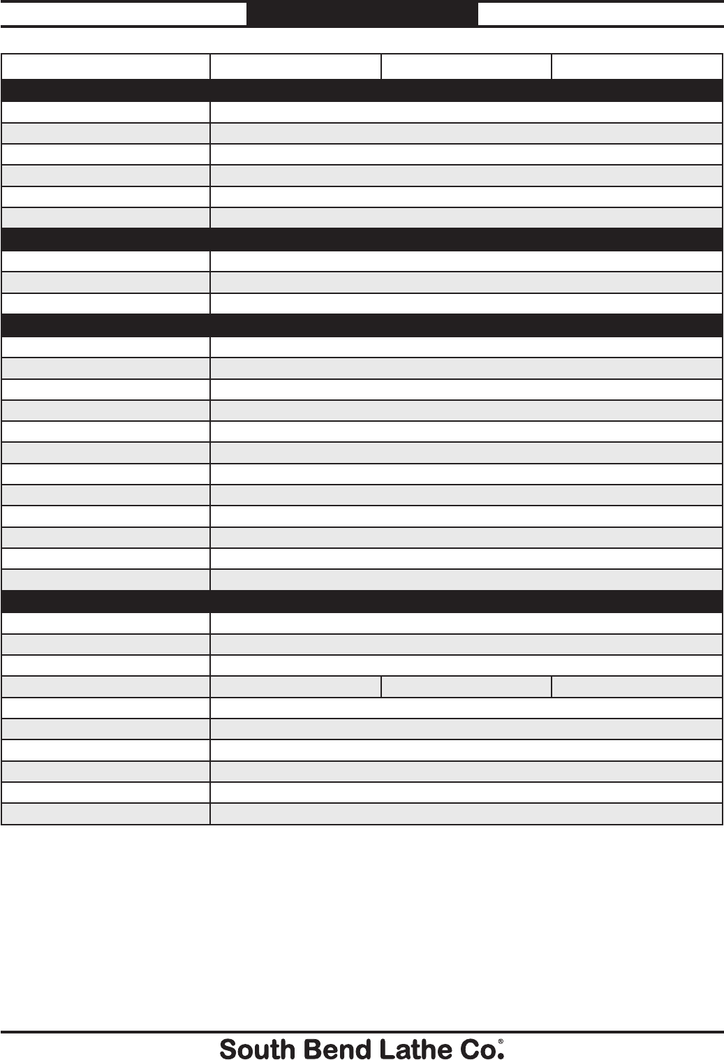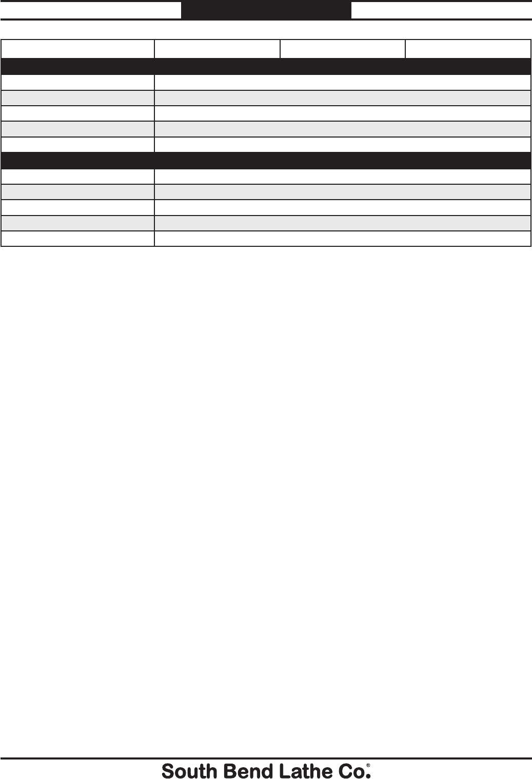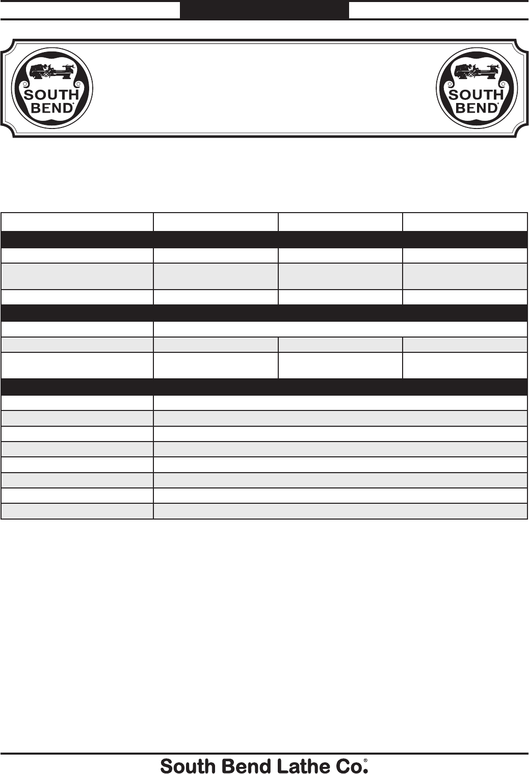 © August, 2011 by South Bend Lathe Co. For Machines Mfg. Since 3/11