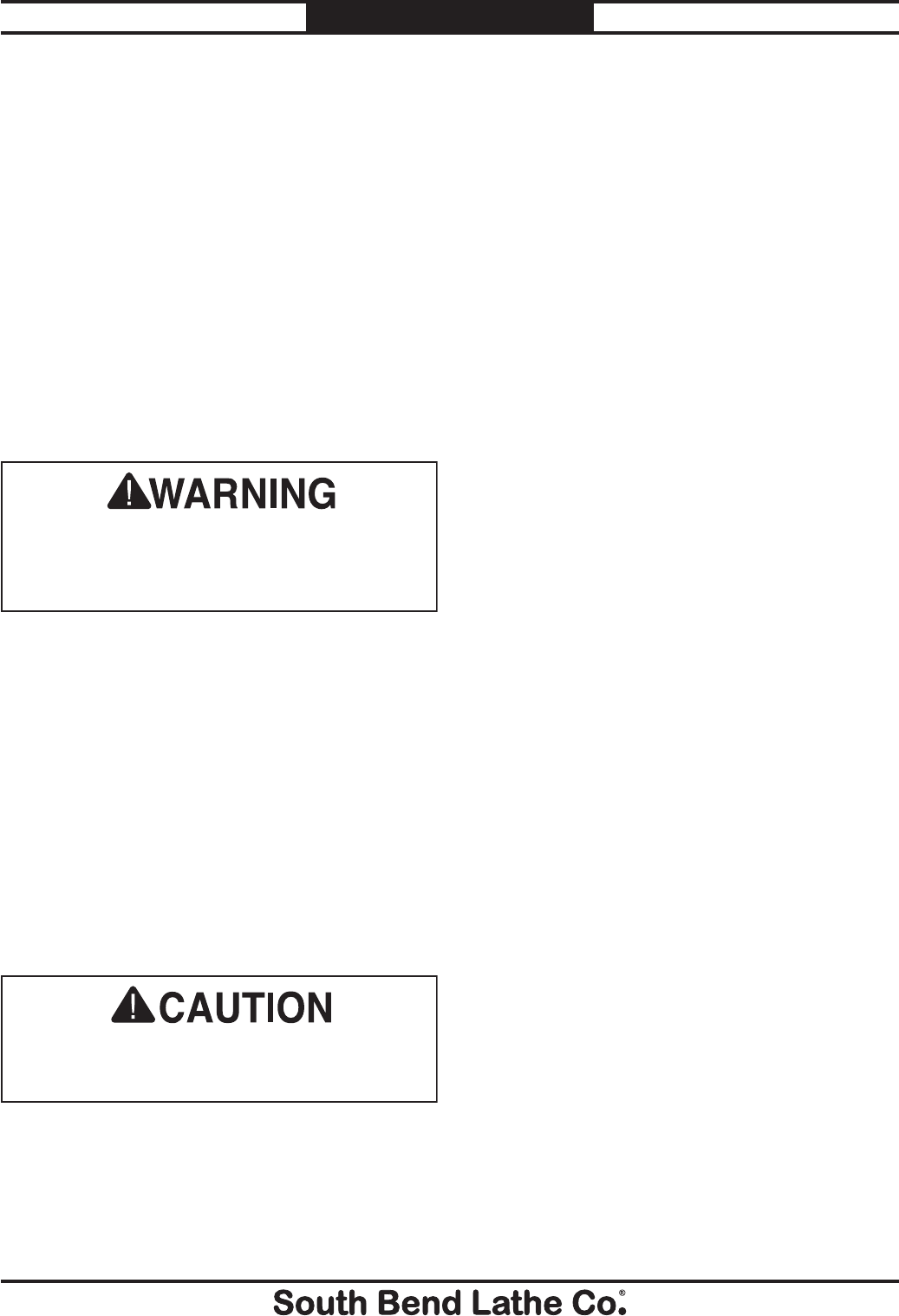 unreadable, REPLACE that label before using the machine again. Contact South Bend Lathe Co. at