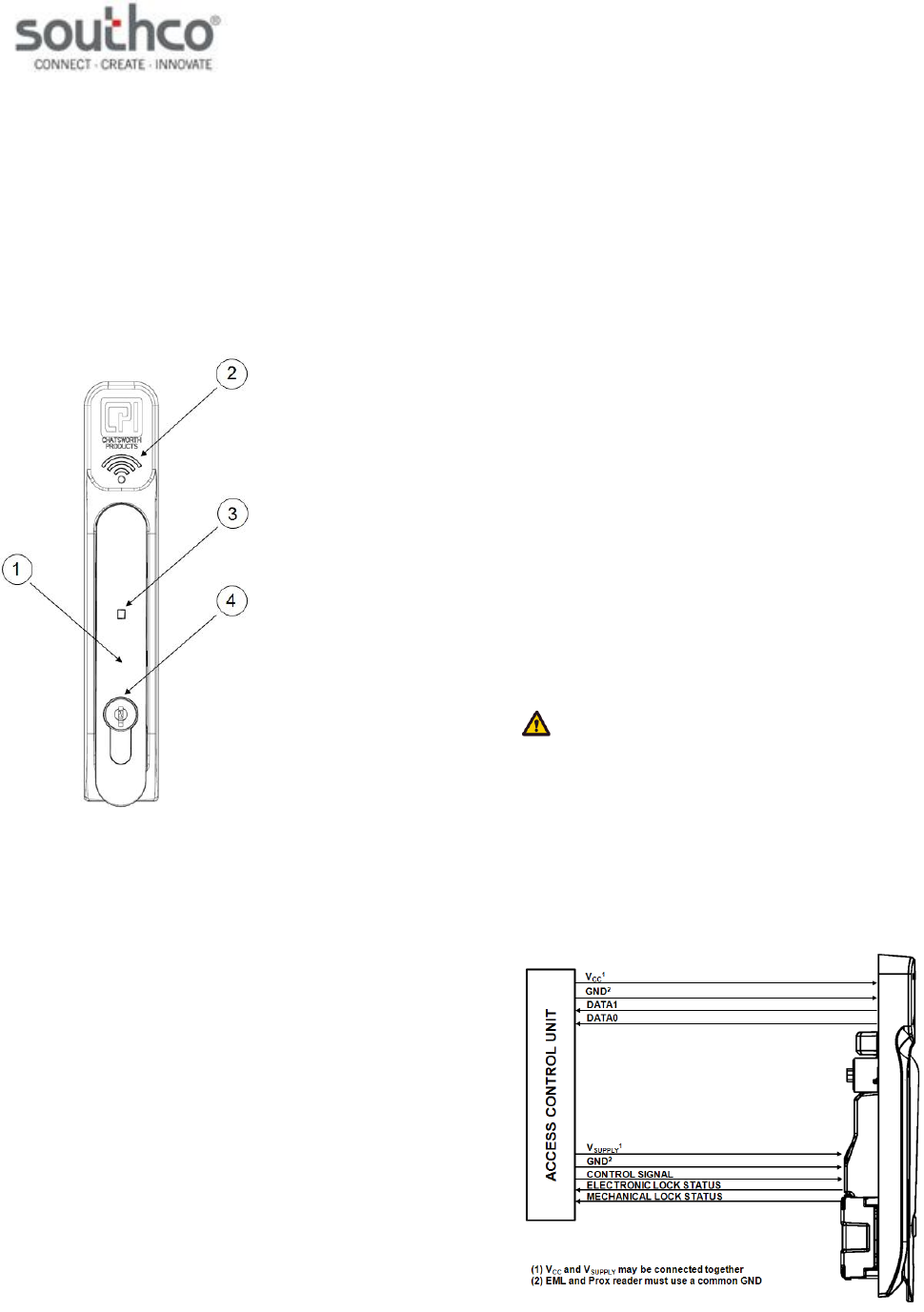 connection to an access control unit (not provided), as illustrated below,