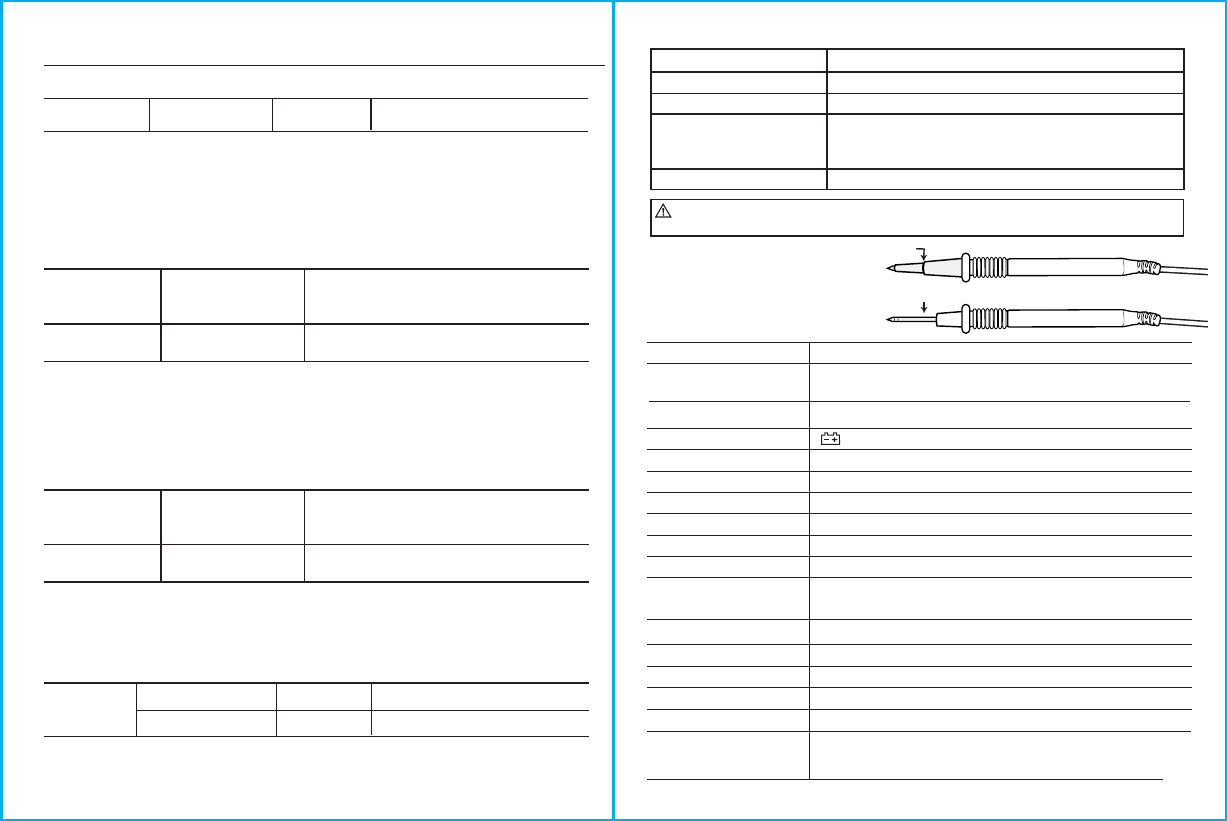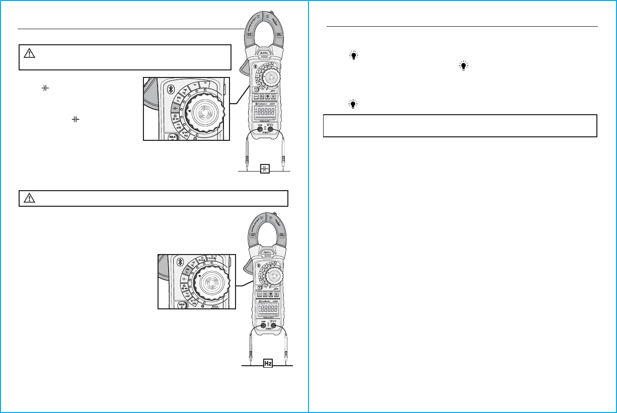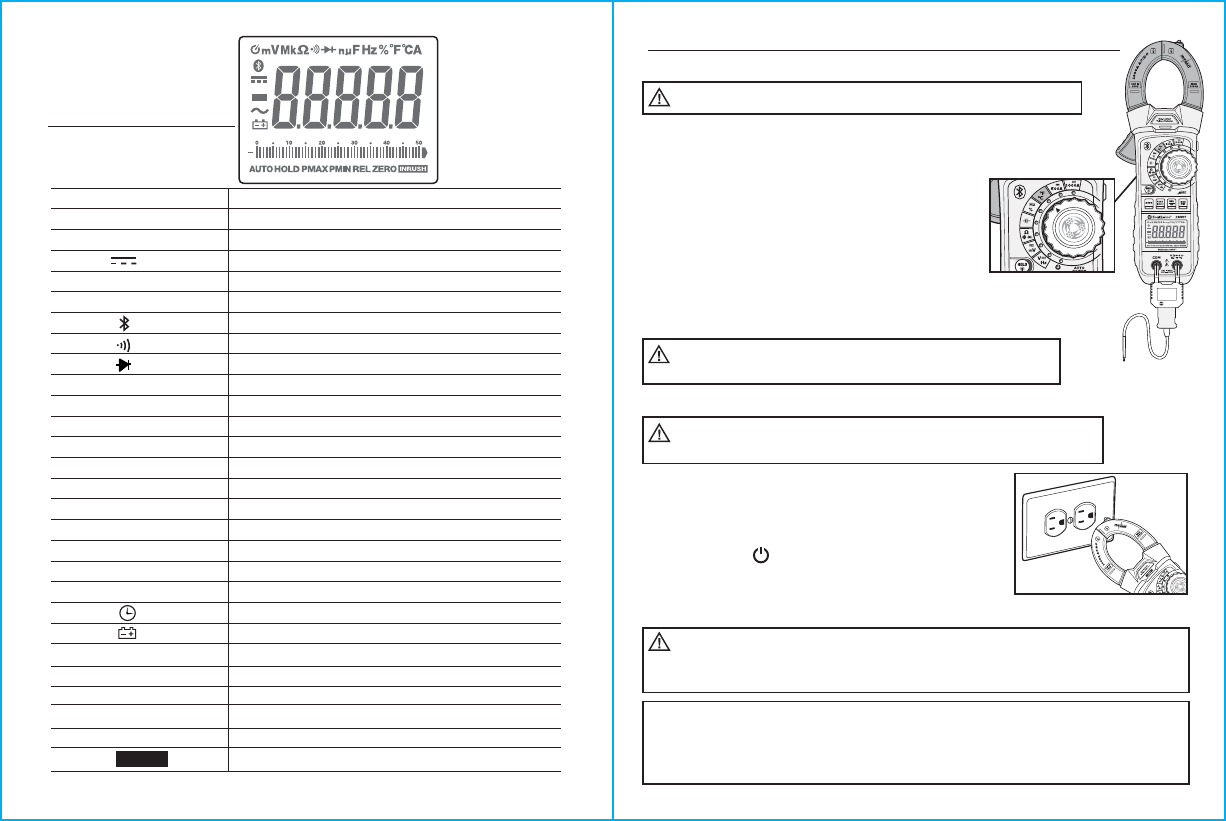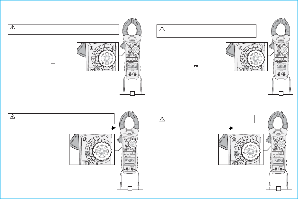• Use caution on live circuits. Voltages above 30 V AC RMS,
