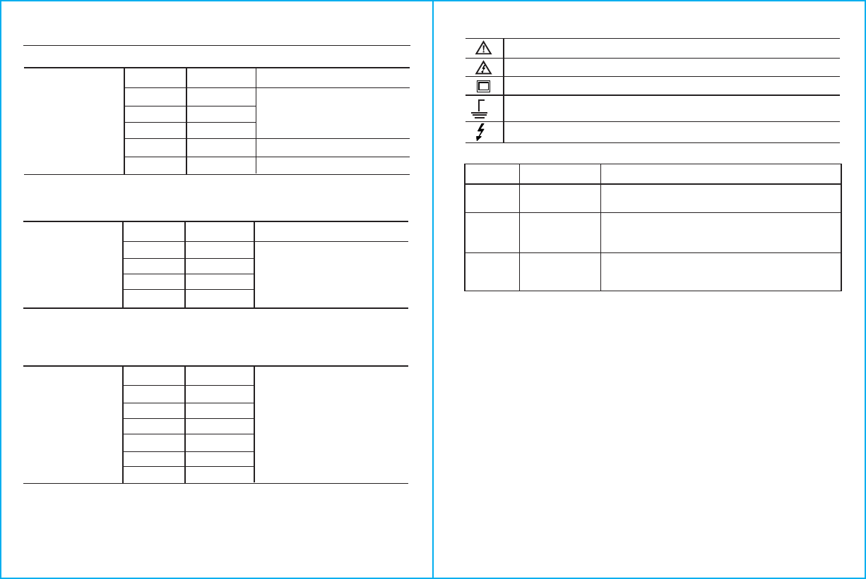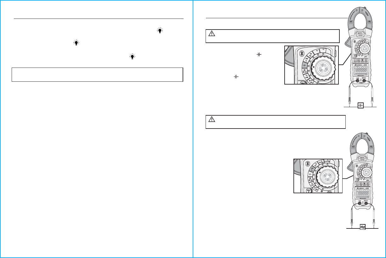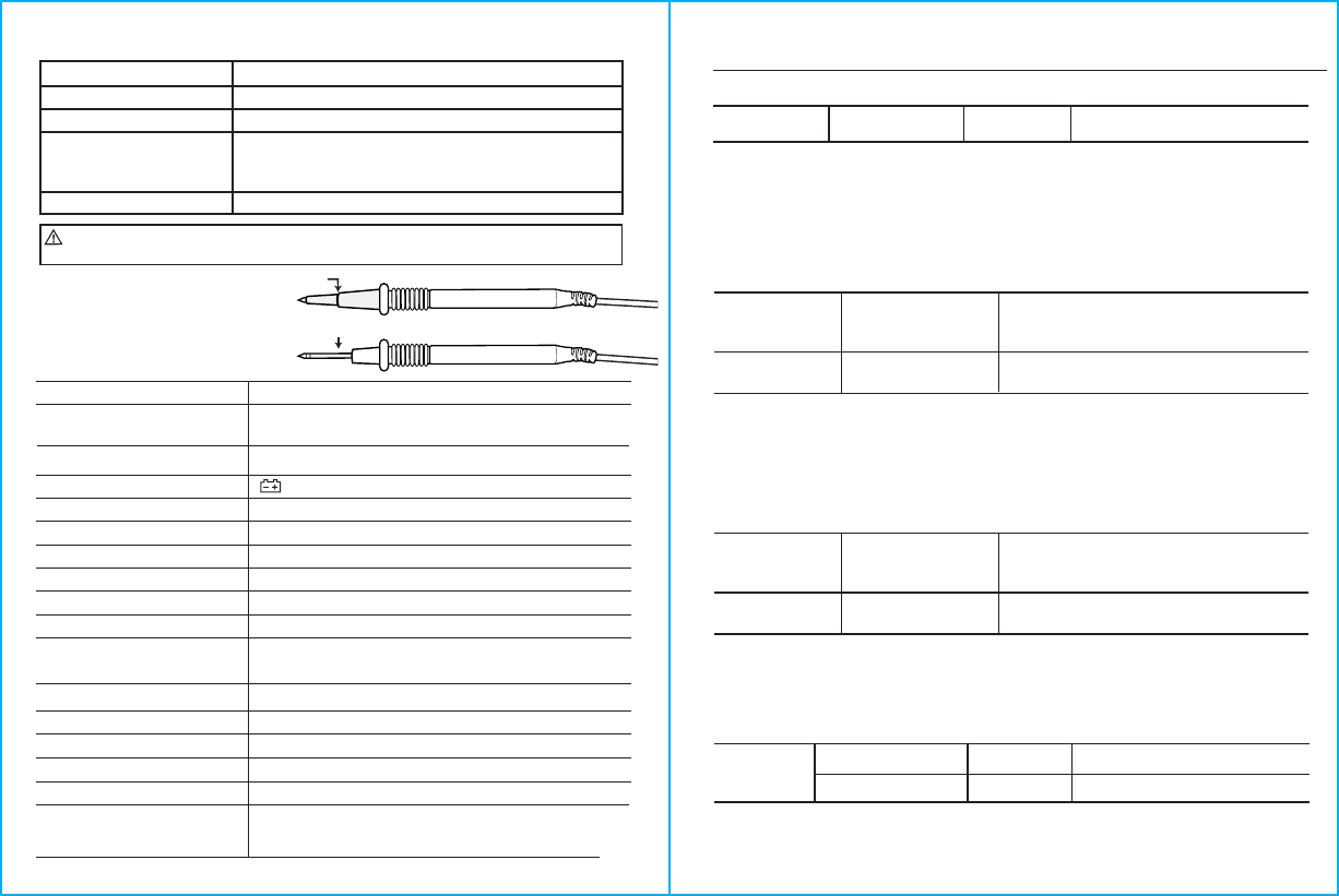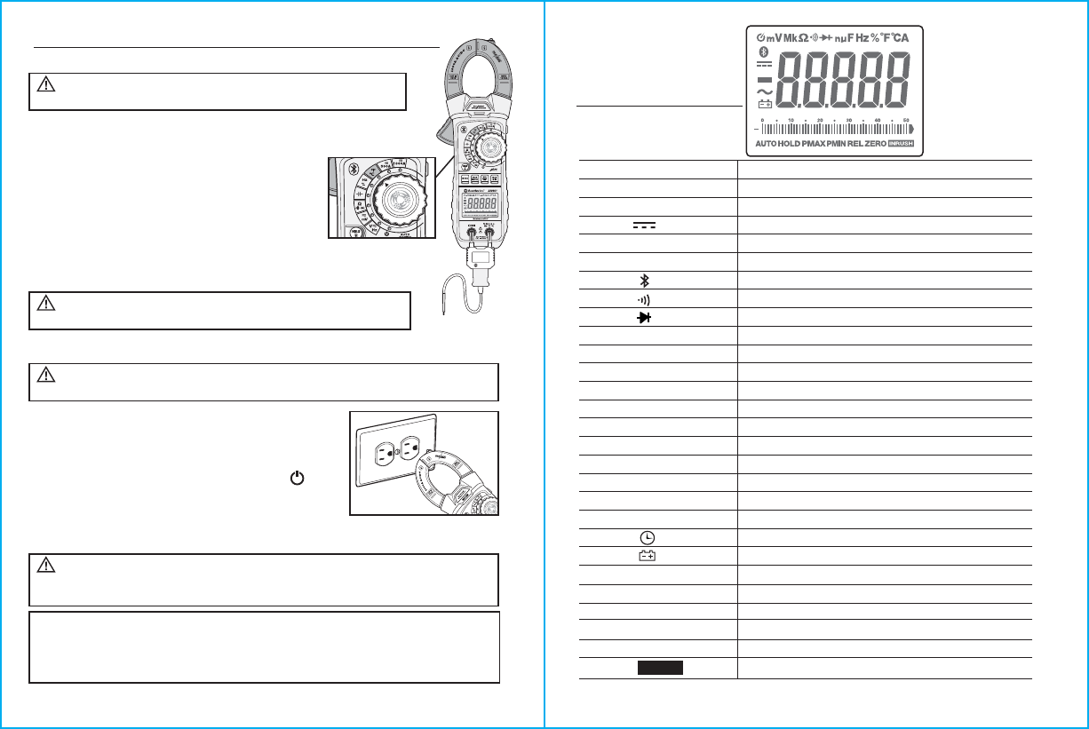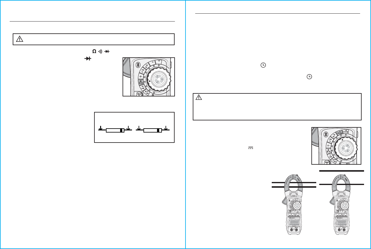 • Use caution on live circuits. Voltages above 30 V AC RMS,