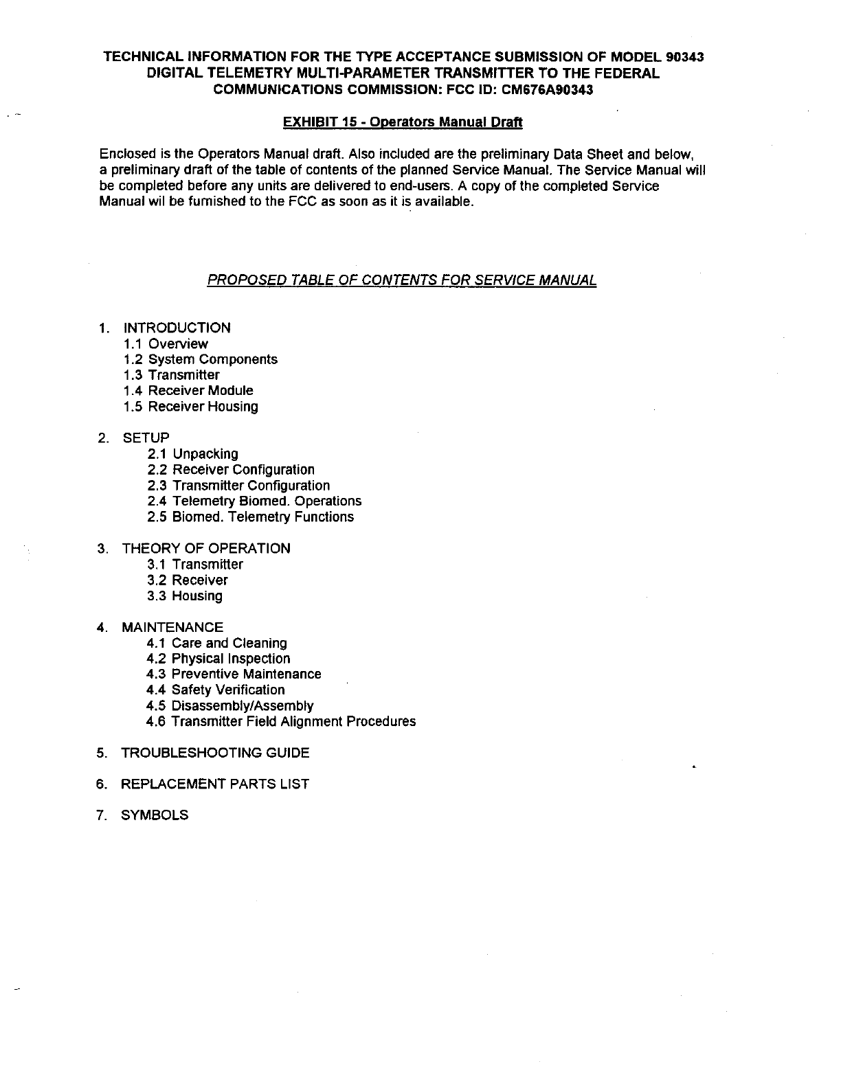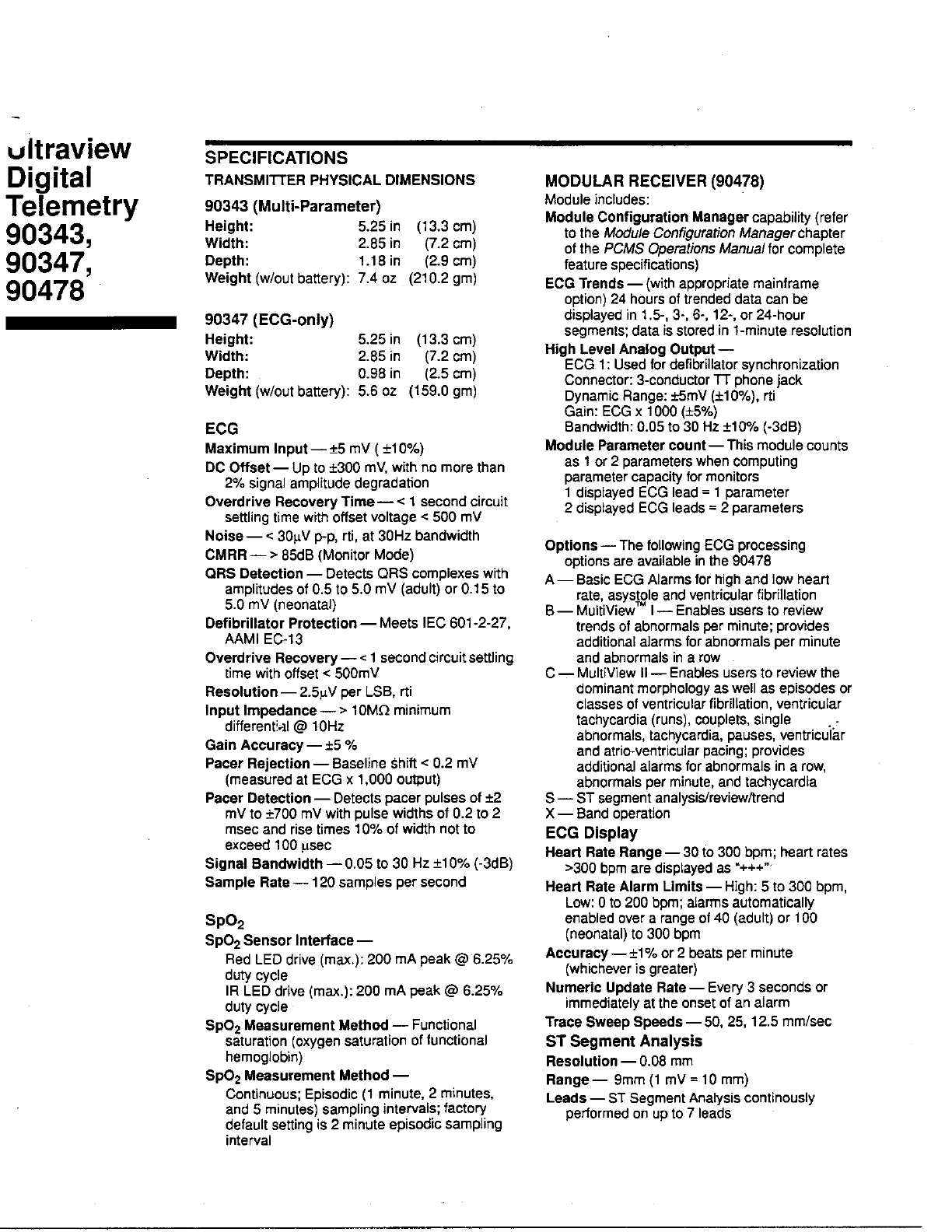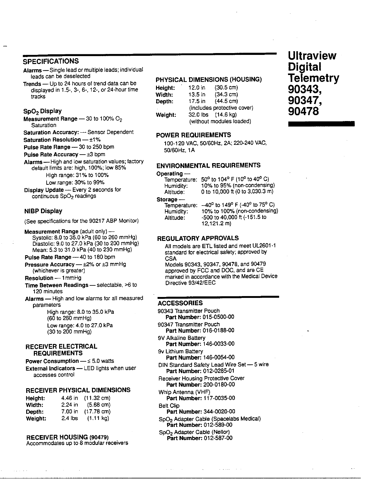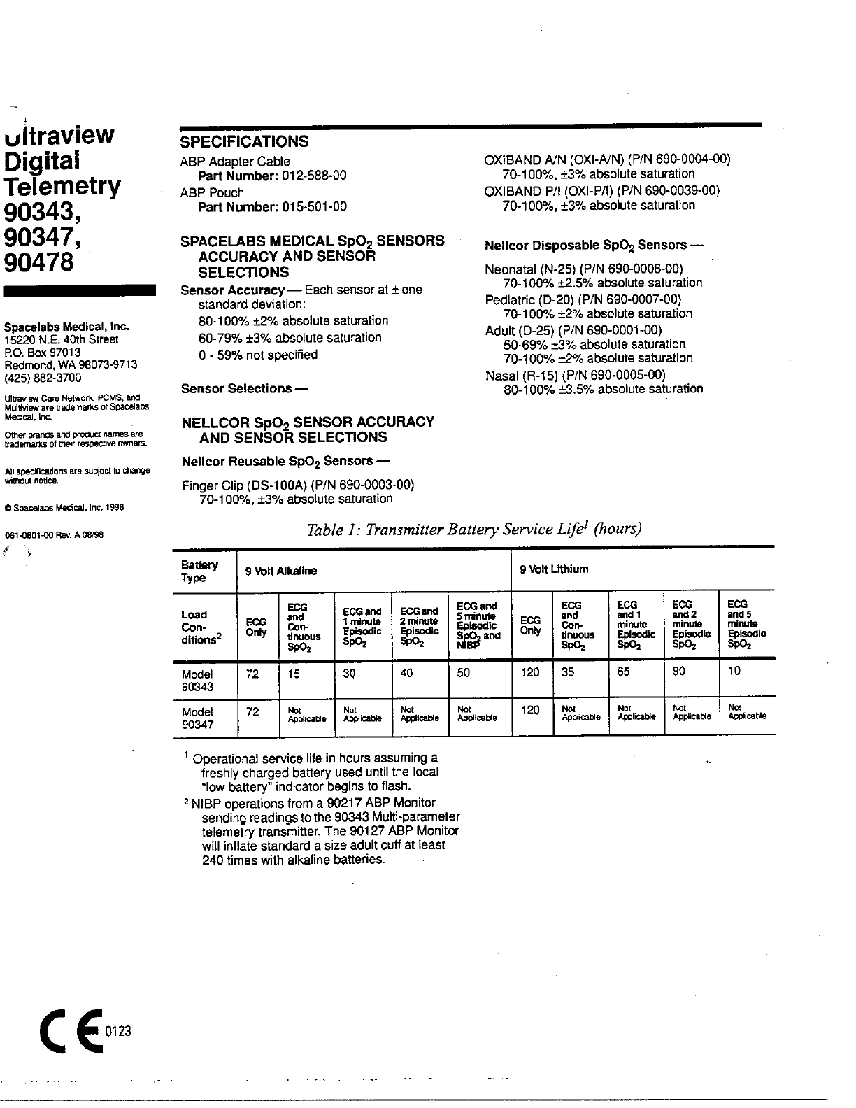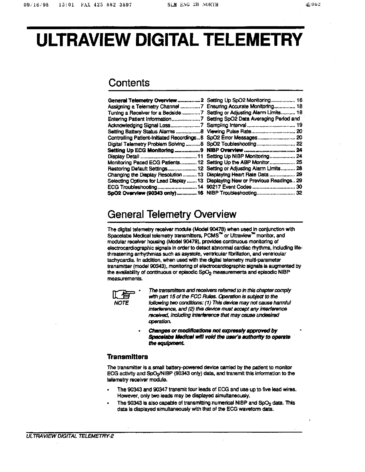 Spacelabs Healthcare 76A90343-05 Biomedical Telemetry Transmitter User Manual 32459