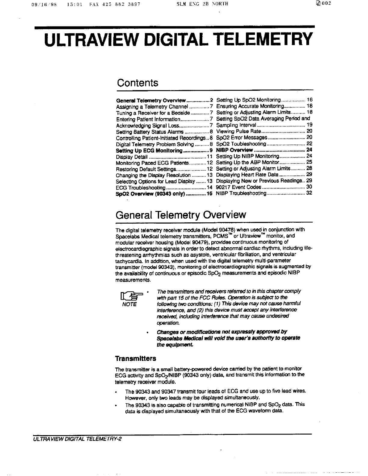 Spacelabs Healthcare 76A90343 Medical Telemetry Device User Manual 8