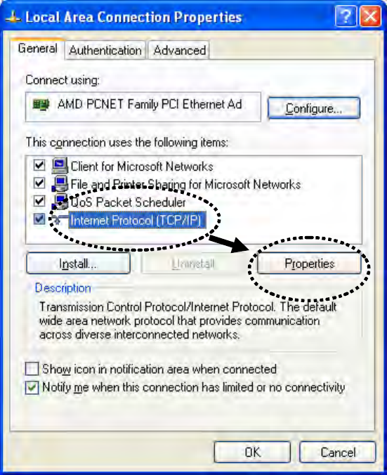 2-2-3 Windows XP IP address setup
