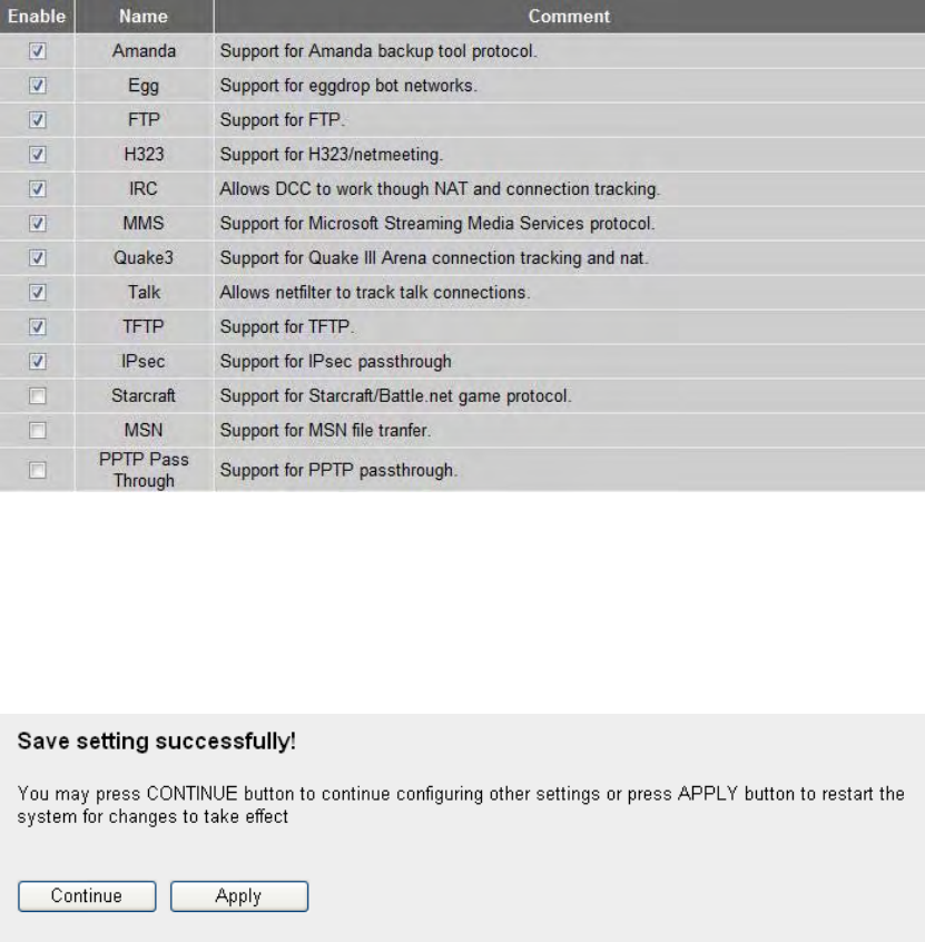 application/protocol over another. Below is a list of common applications and