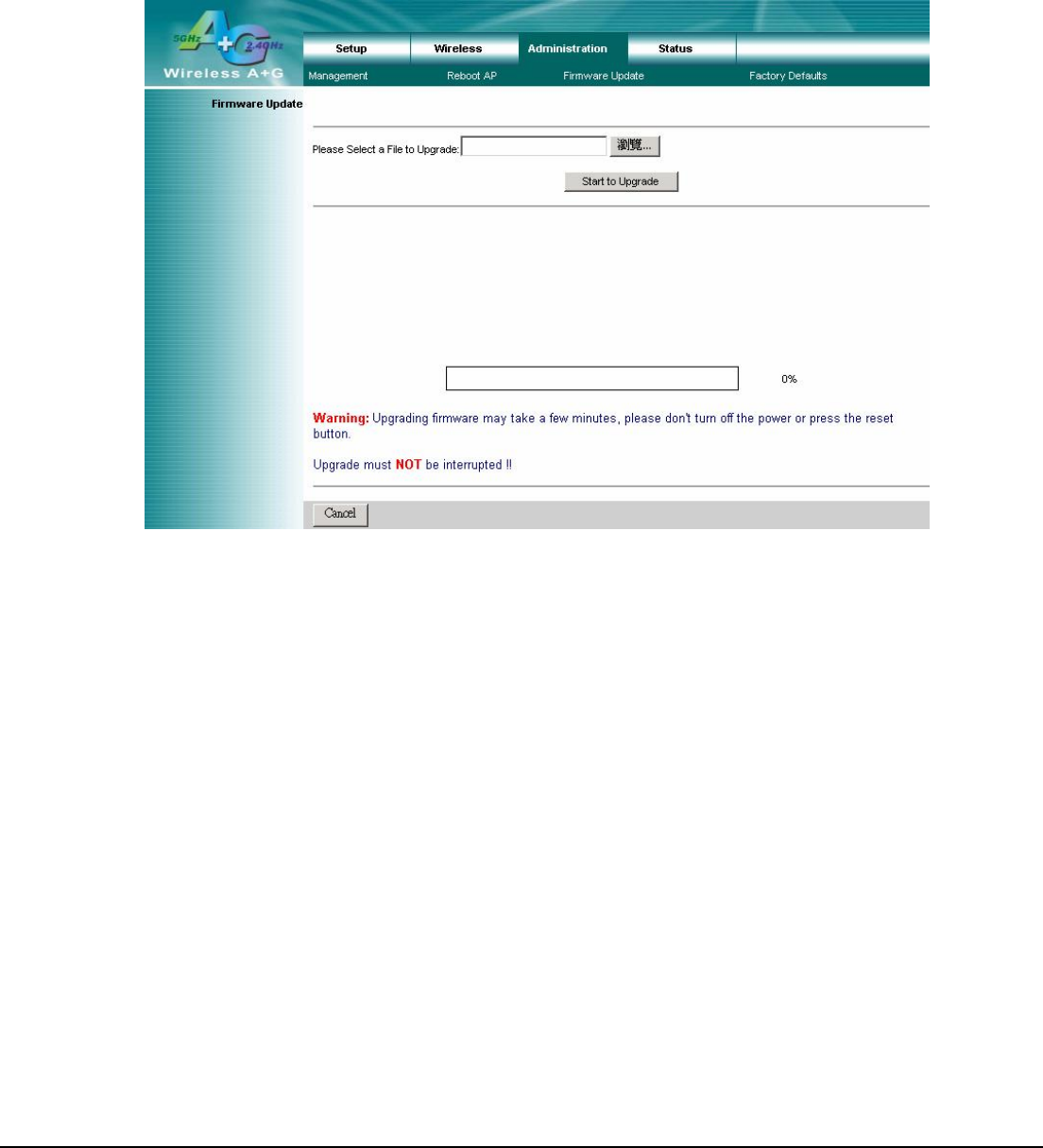 This Firmware Upgrade screen allows you to upgrade the AP’s firmware. Do not upgrade the firmware unless you are