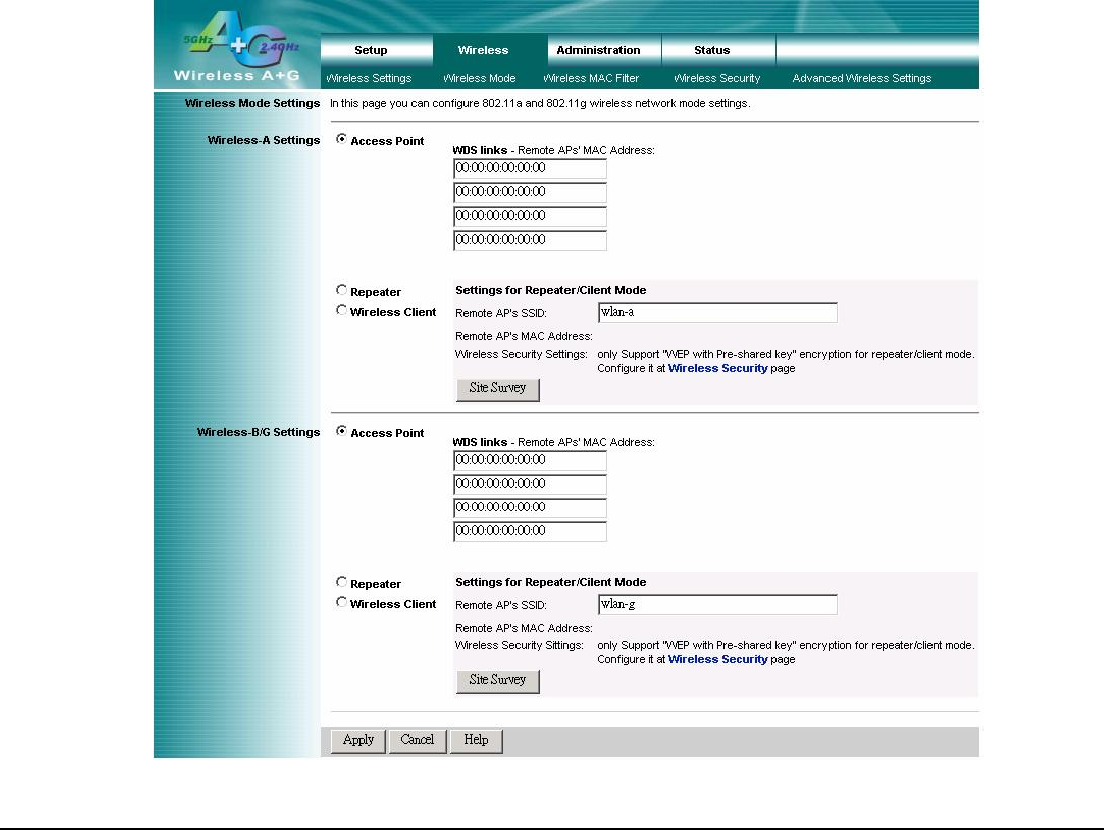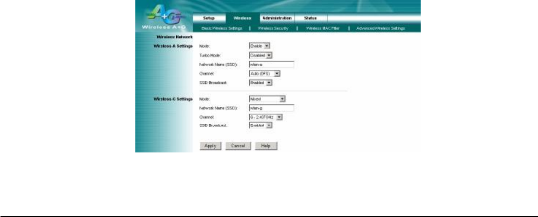 Mode: This mode is displaying the current status of Wireless-A band network. Enabled means the A band network is