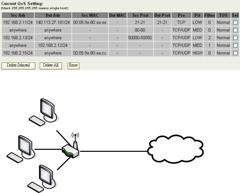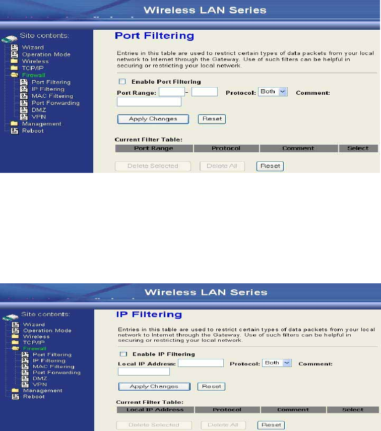 supports three kinds of filter Port Filtering, IP Filtering and MAC Filtering. All