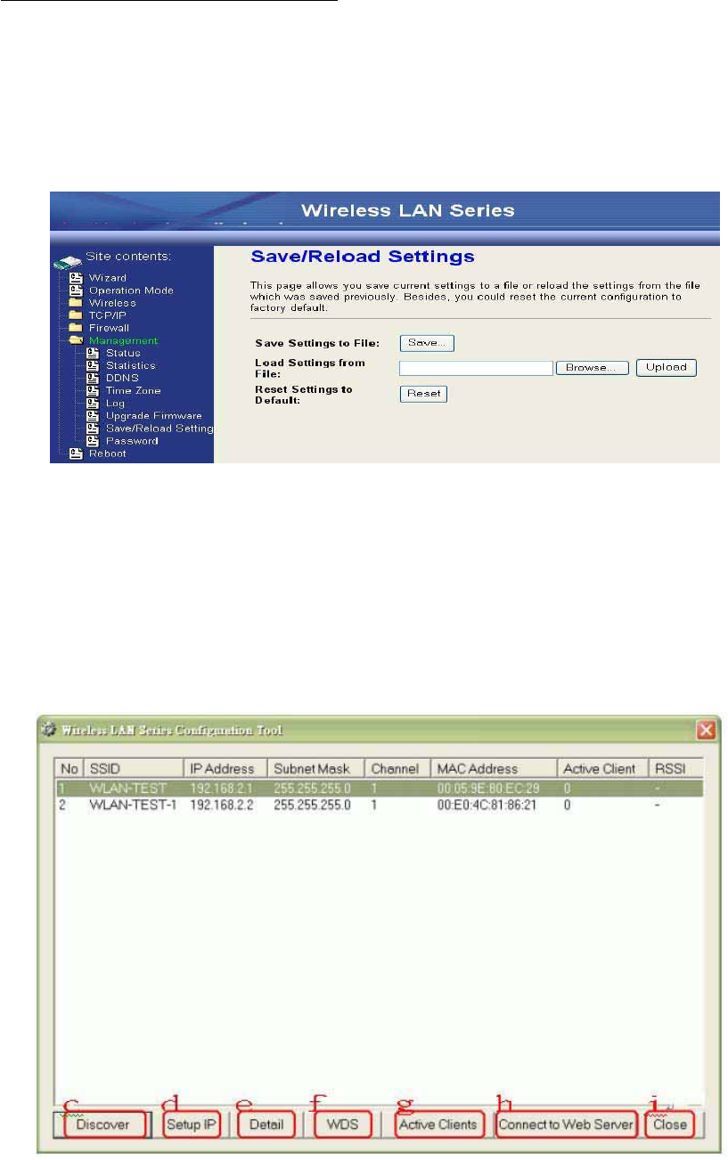 provides the Web-Browser interface to rest the configuration data. After resetting