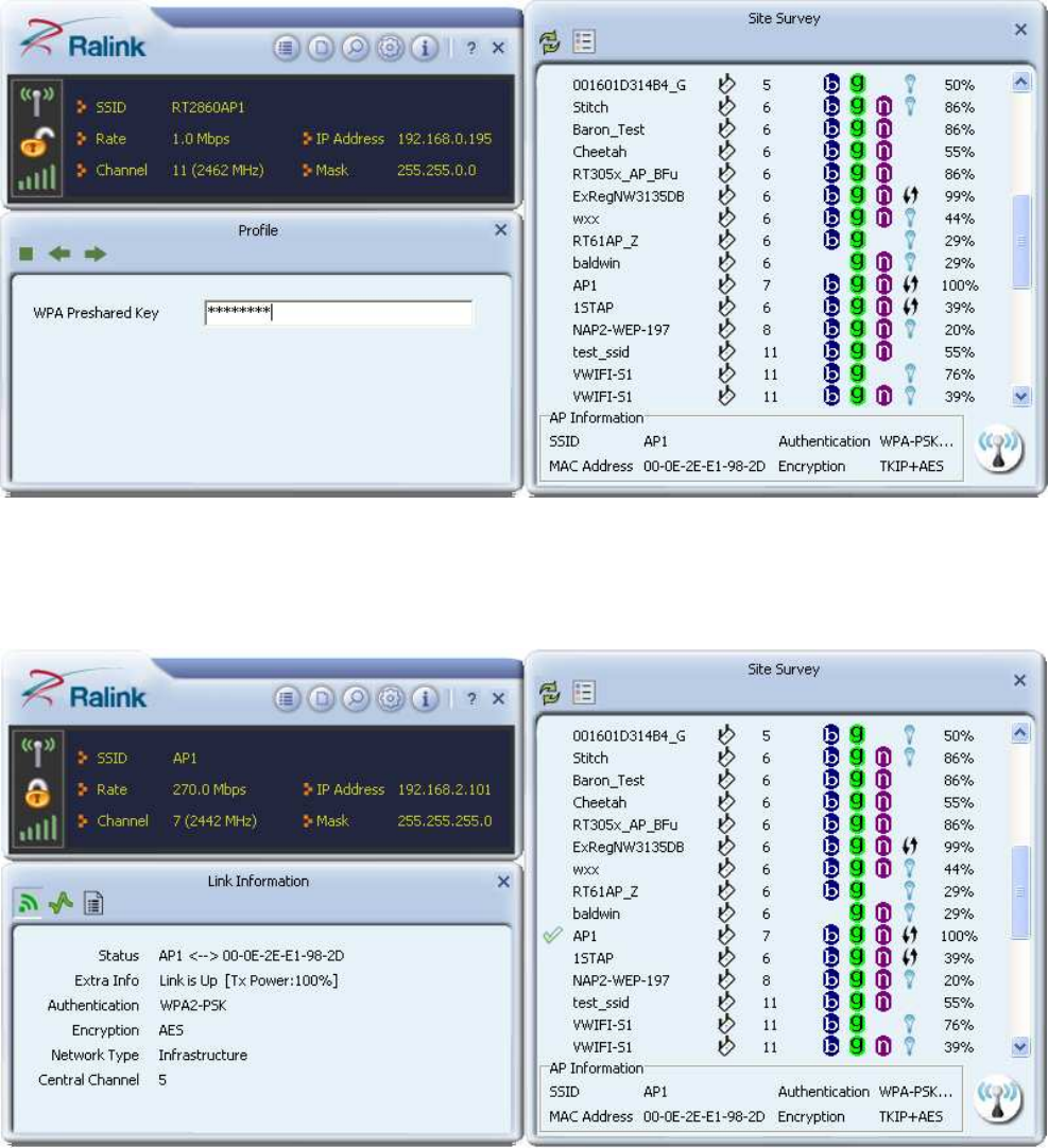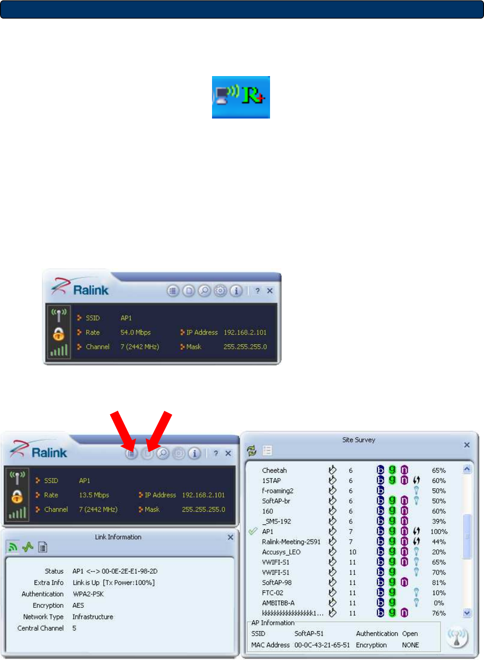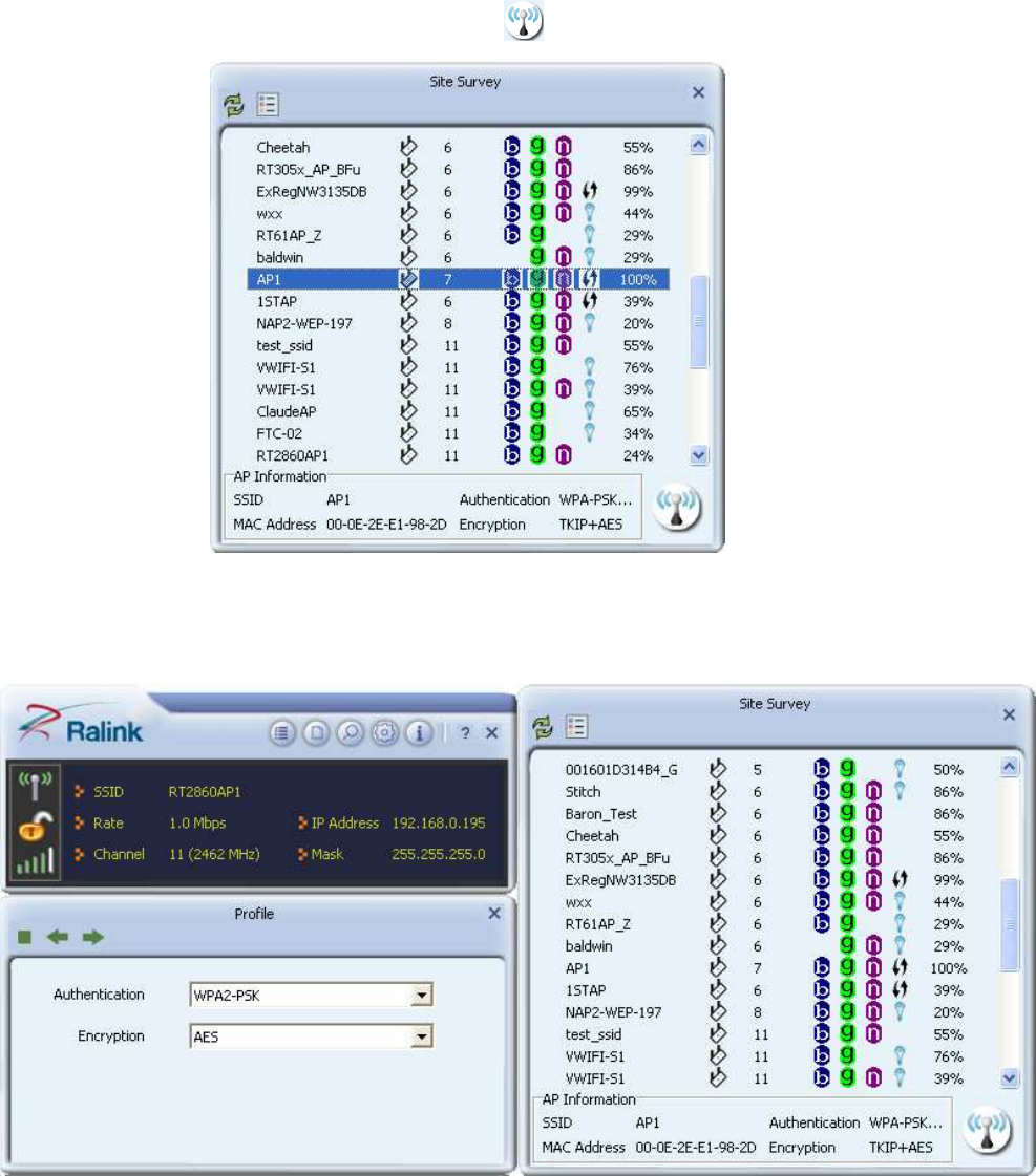 2. When starting RaUI, the system will connect to the AP with best signal strength without