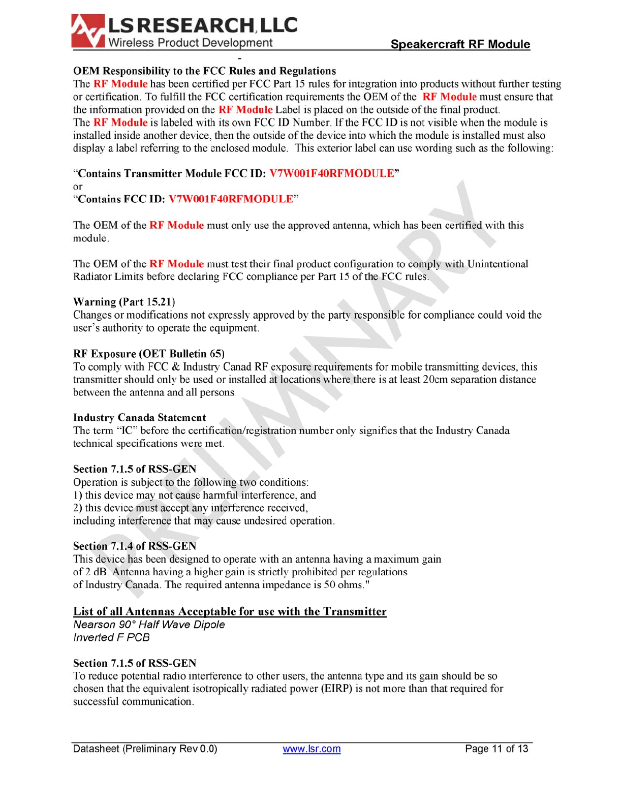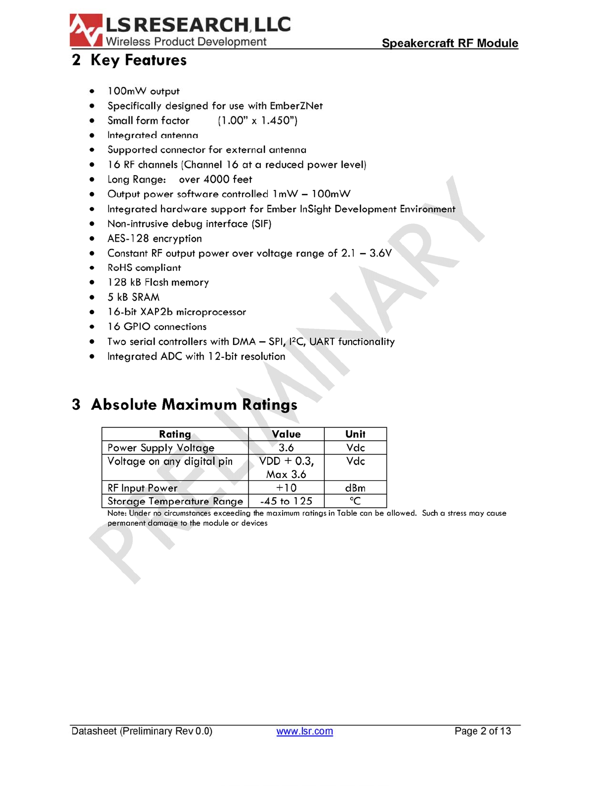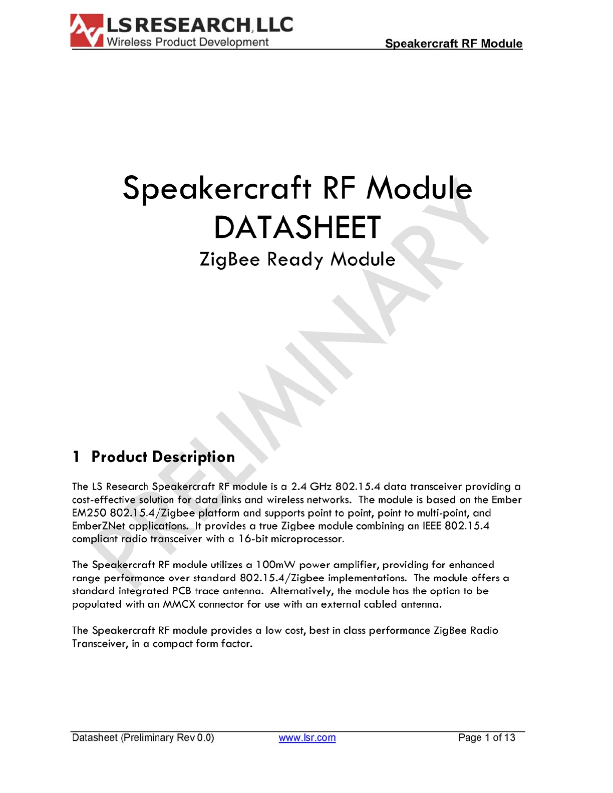 Speakercraft, Inc. 802.15.4 Transceiver Module Full page fax print