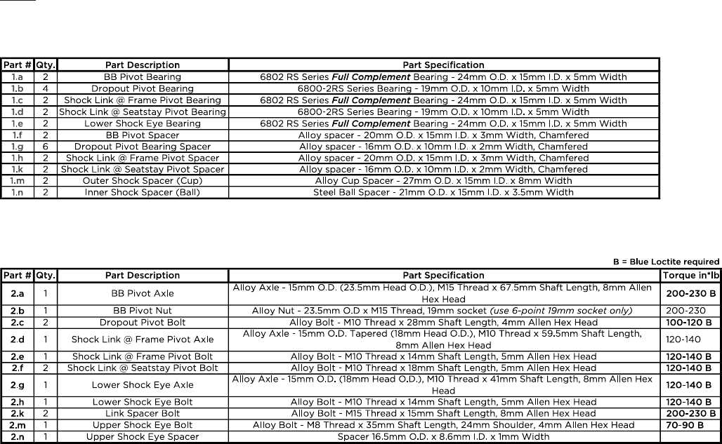 NOTE: Bearing and Bolt Kits are available only through your local Specialized dealer. To retain your warranty and for your safety, all