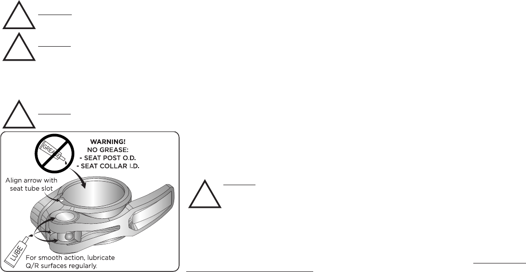 Warning! Do not extend the seat post beyond the minimum insertion line marked on the seat post, or the minimum seat