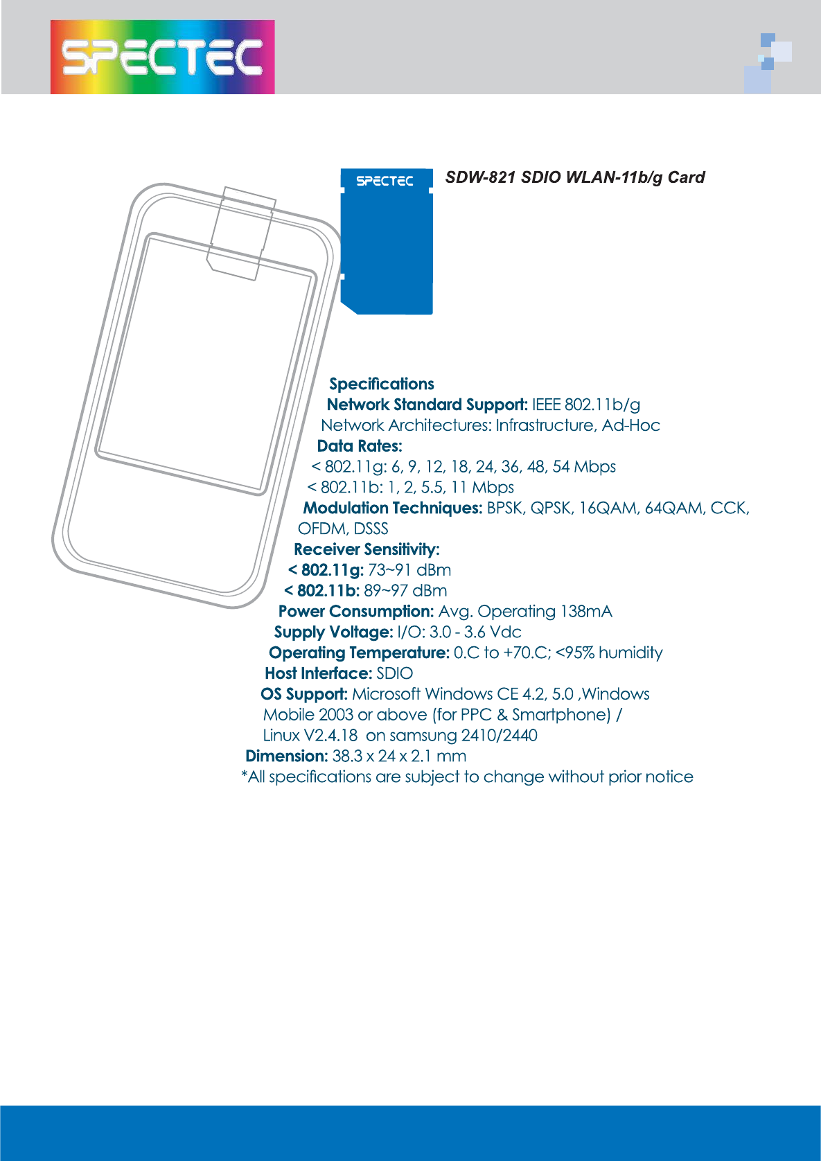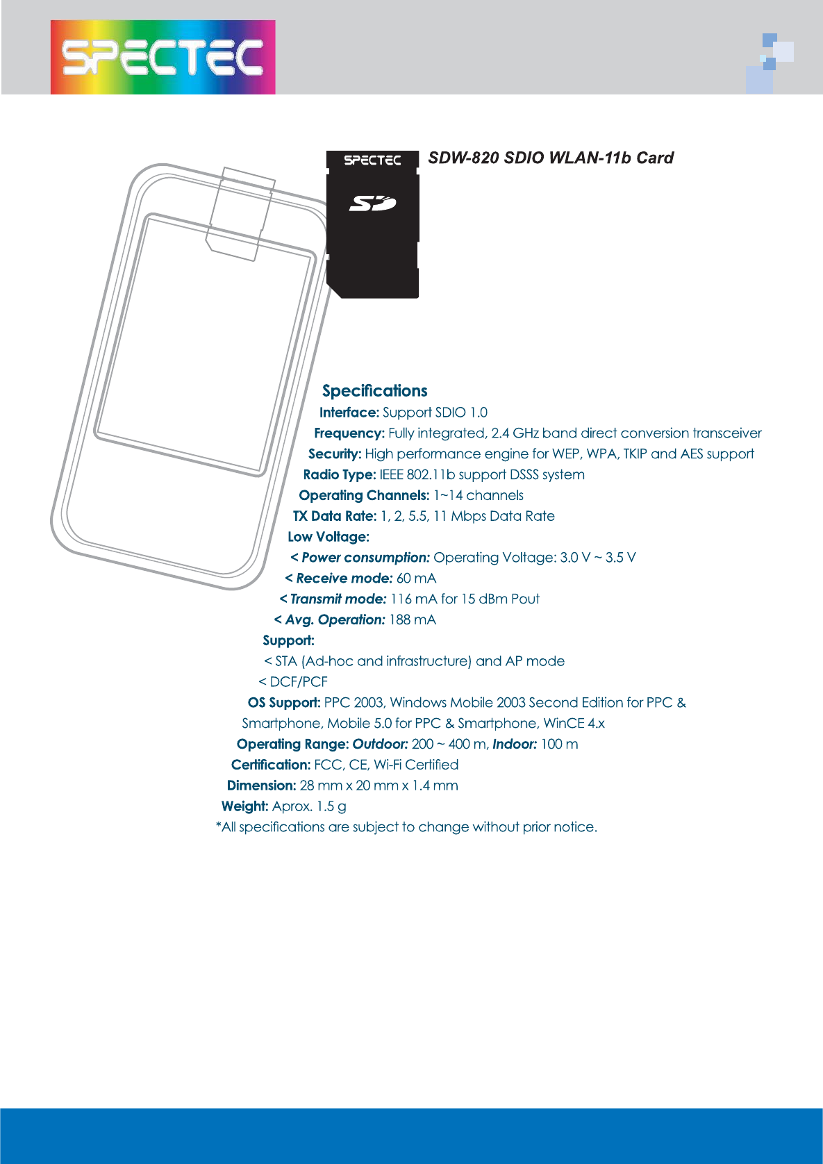 Spectec Computer Co., Ltd Micro SDIO Wireless Lan-11b/g Card wlan card spectec brand user s manual indd