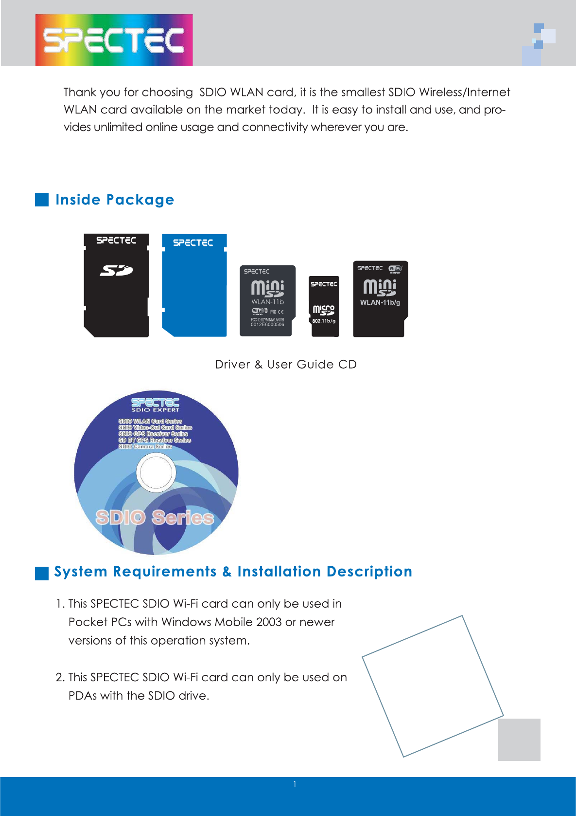Spectec Computer WLAN-11G-K SDIO Wireless Lan-11b/g Card User Manual wlan card spectec brand user s manual indd