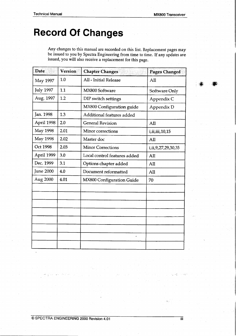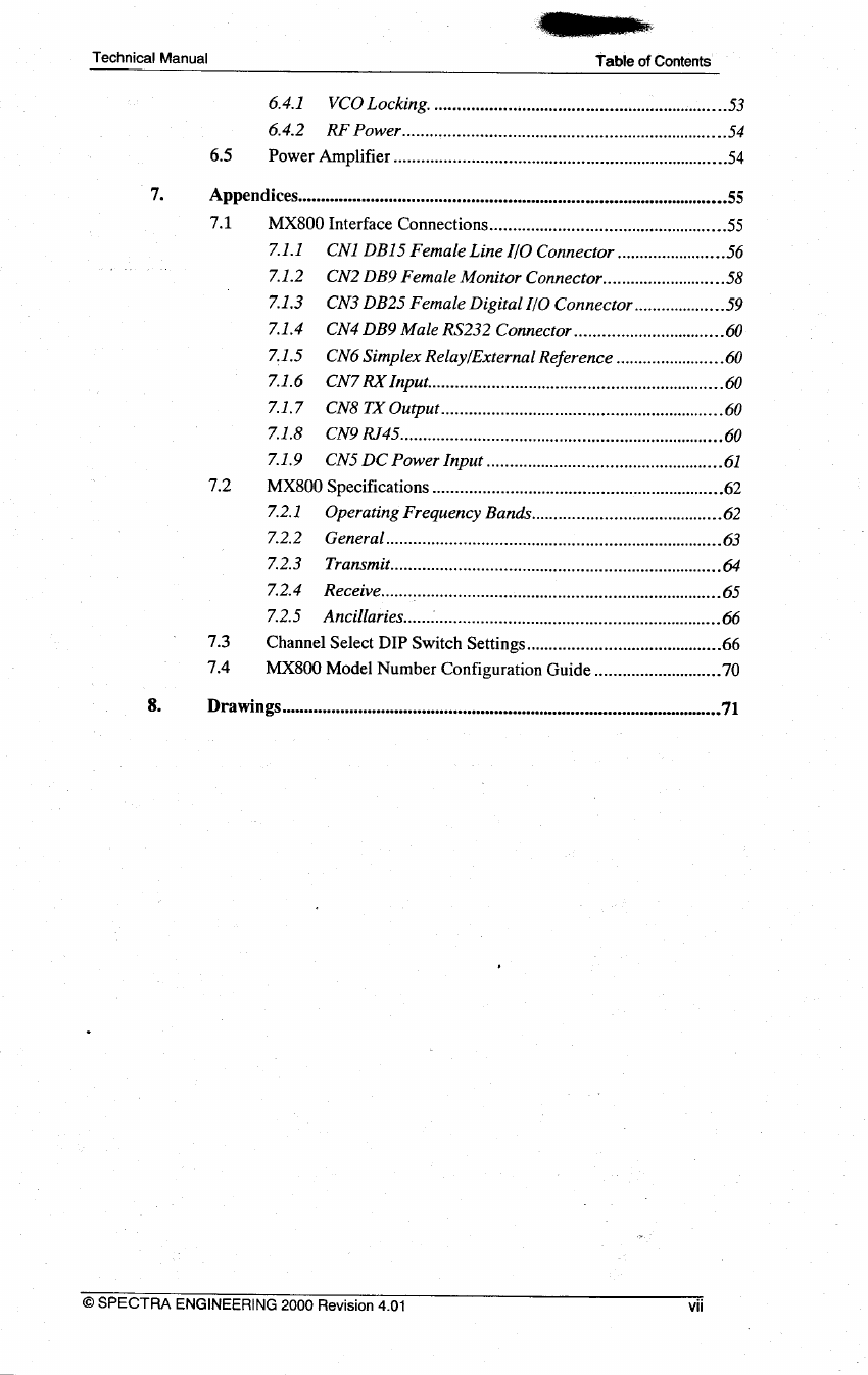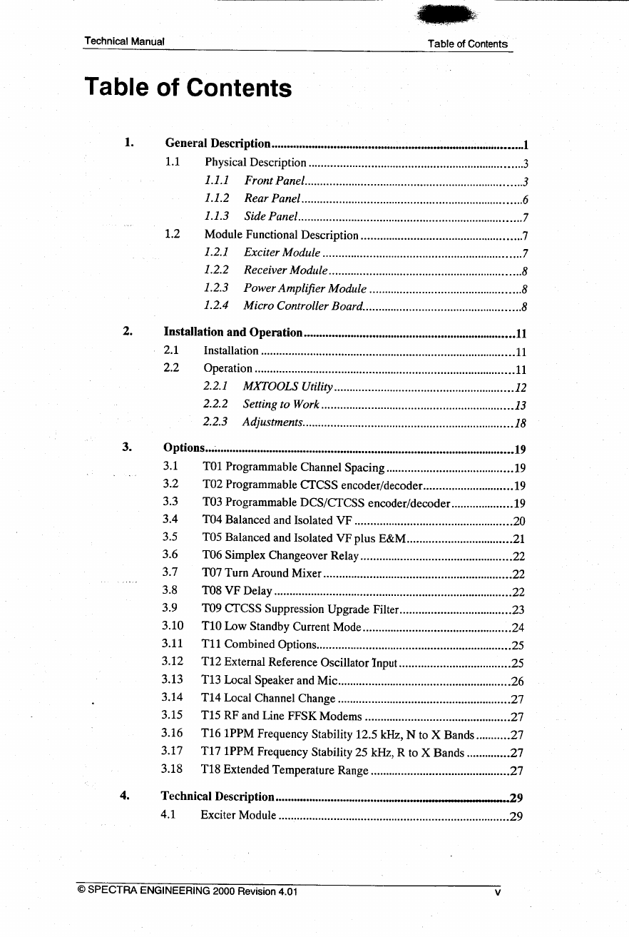 Spectra Engineering MX800AB Repeater/Base Station User Manual TOC