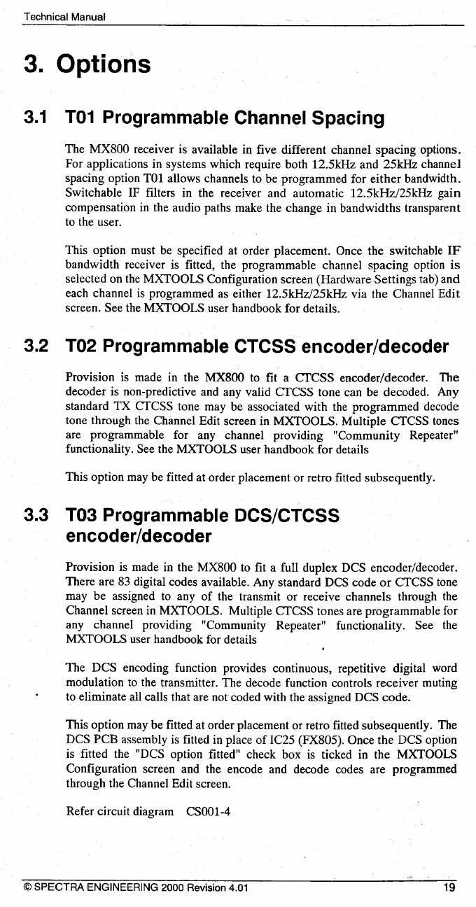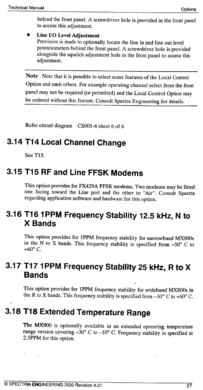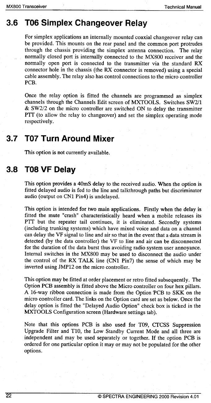 Spectra Engineering MX800FF RF Base Station User Manual 3 Options