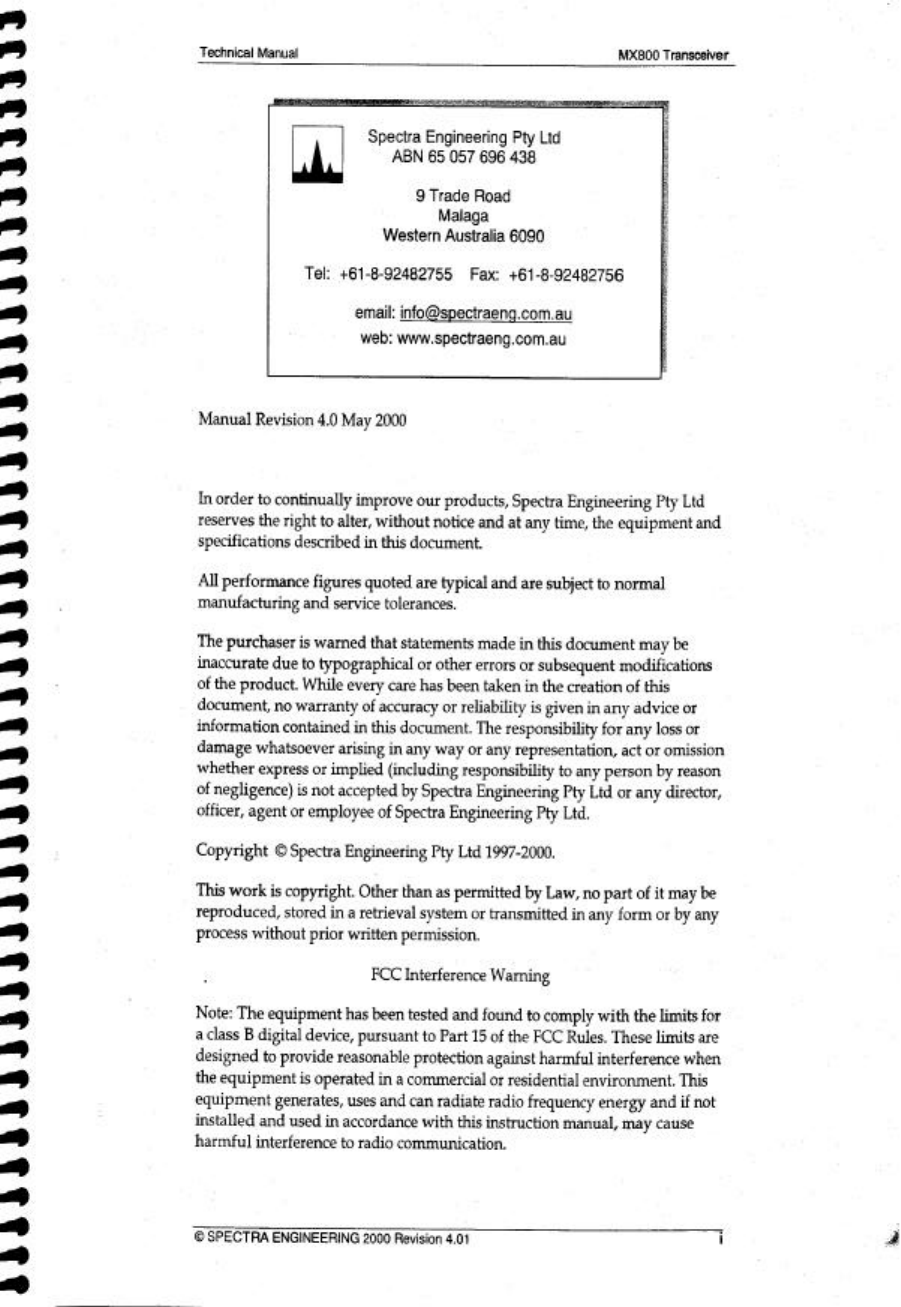 Spectra Engineering PTY LTD RF Base Station/Repeater TOC