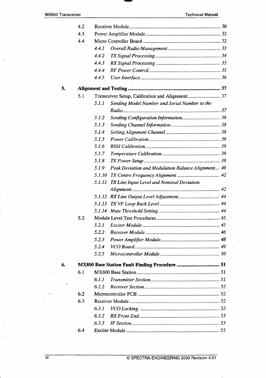 Spectra Engineering MX800R2R3 RF Base Station/Repeater User Manual TOC