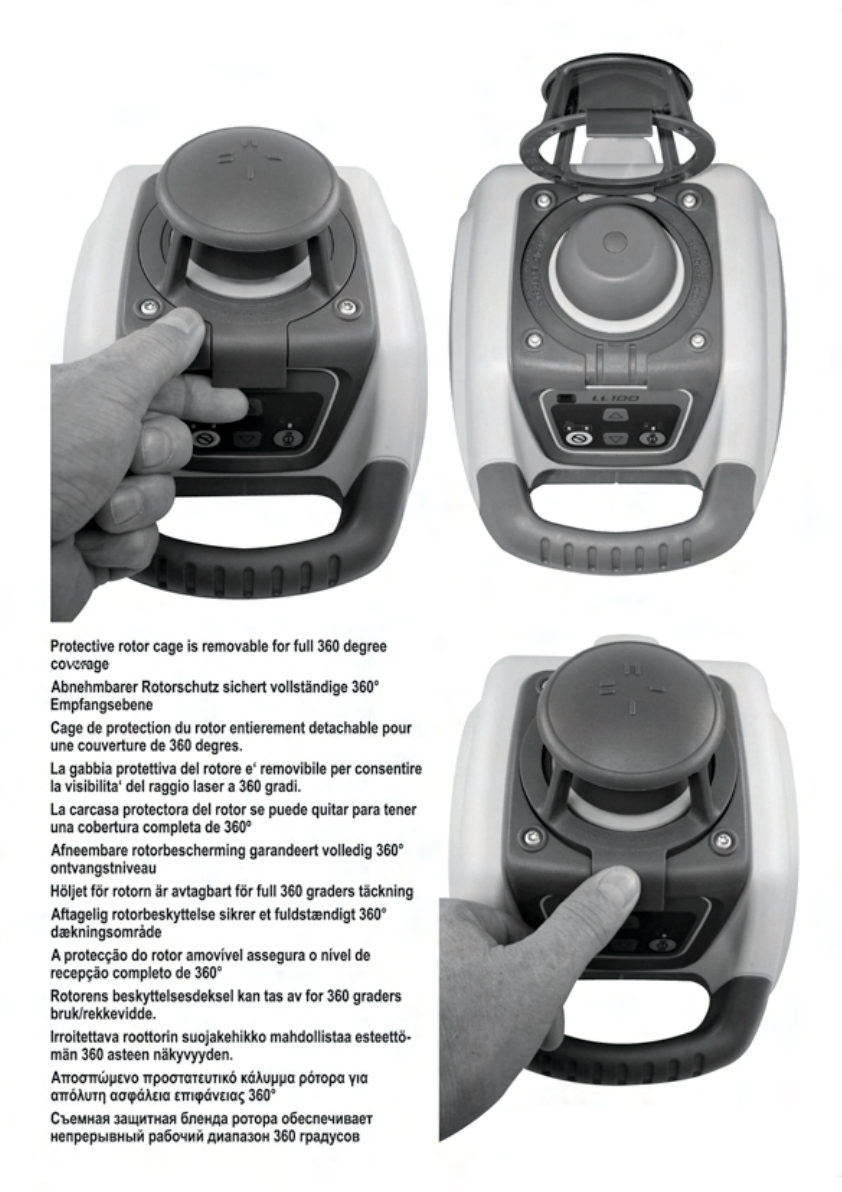 If the laser is positioned beyond it´s self-leveling range of ±8%, the laser beam, and manual and leveling