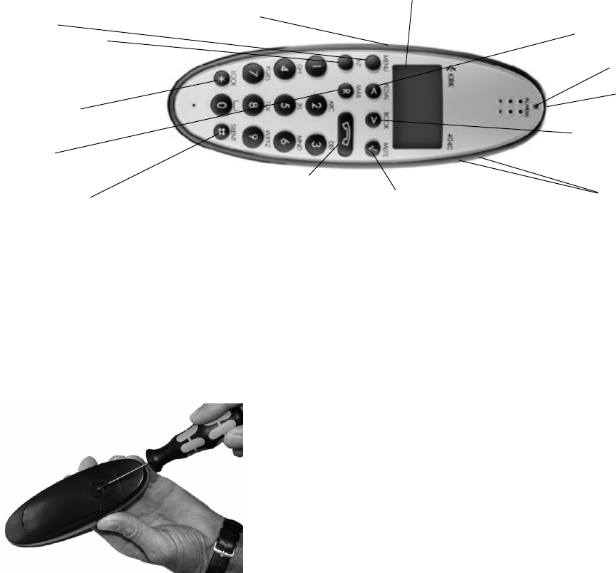 The battery is connected to the handset when it is shipped from the factory. T o change the battery you must uns -