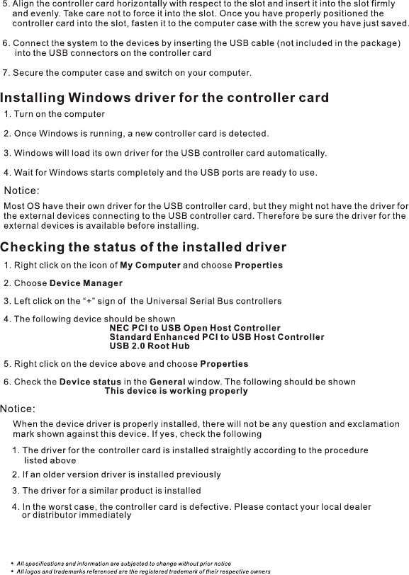 Speed Dragon Multimedia Ltd USB 2.0 PCI-Express Card(4 External + 1 Internal Ports) SE MANL EN101 EN 2 Original 20100609