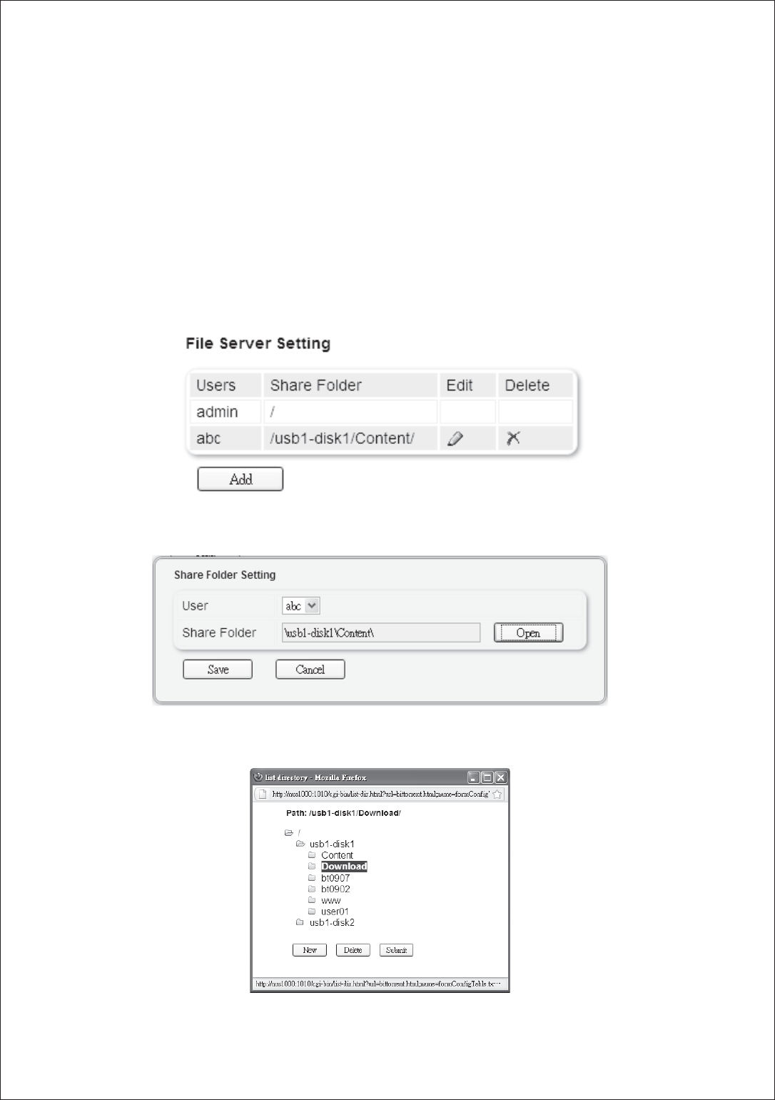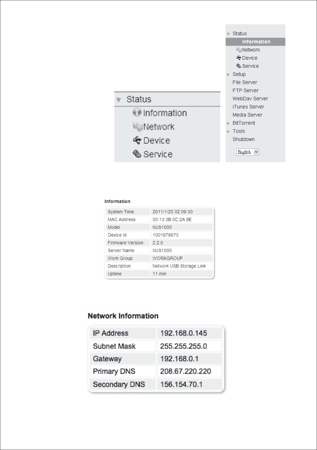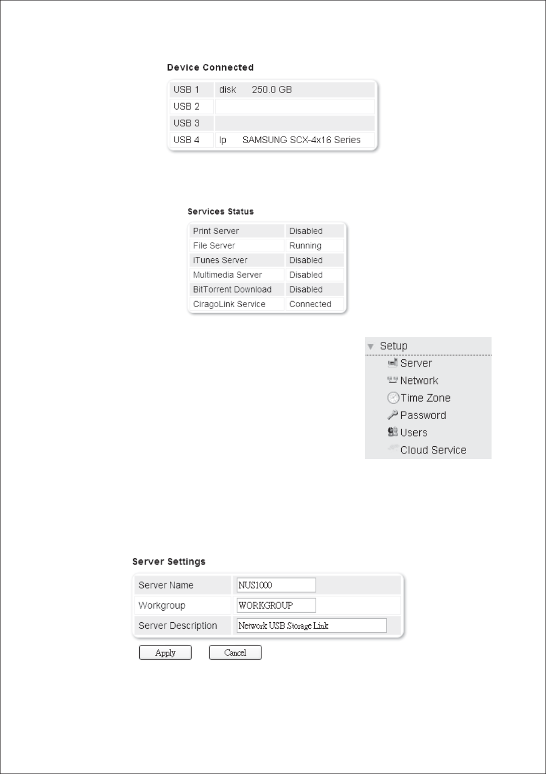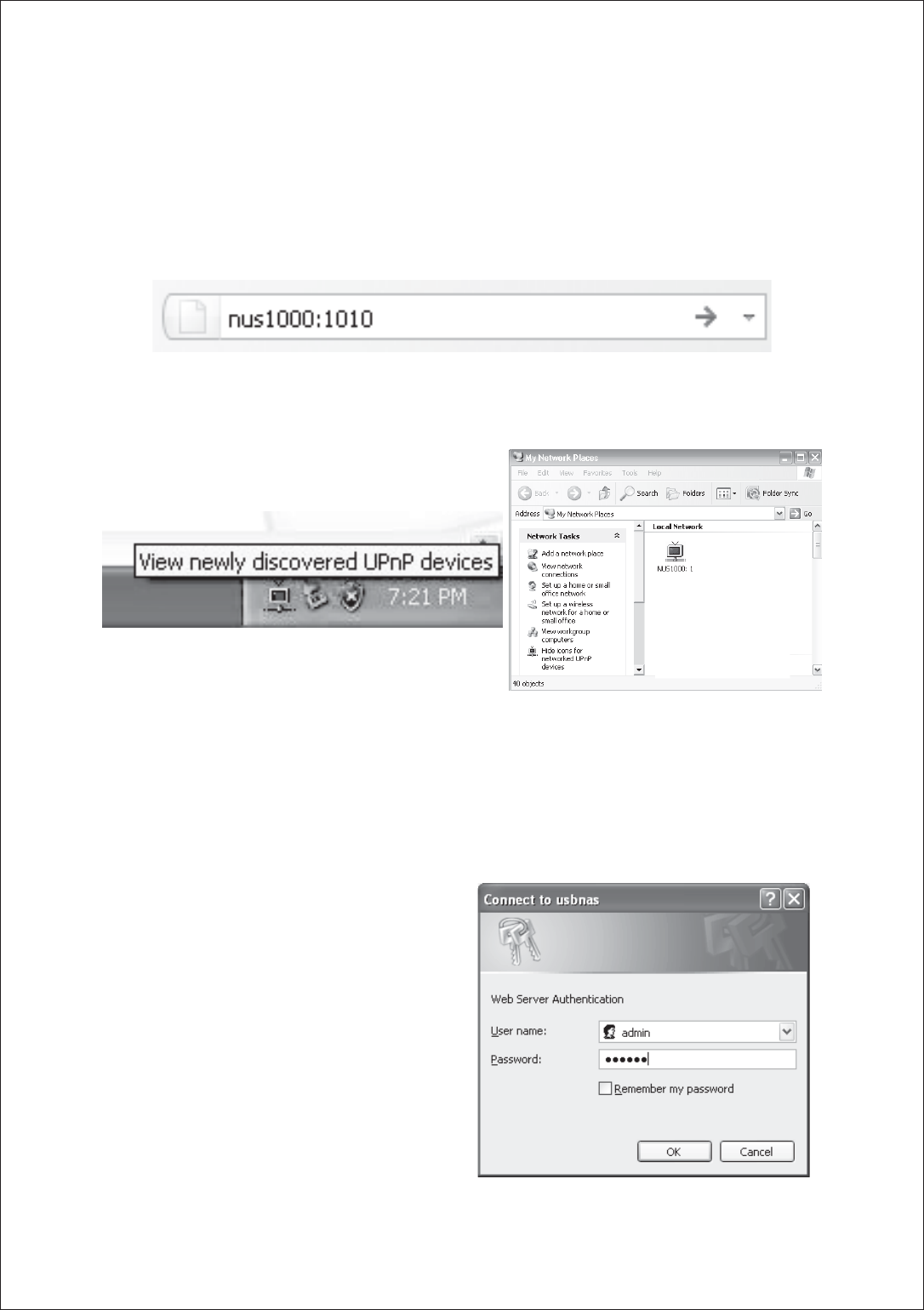 USB storage into the NUS1000, connect the device to your network, configure