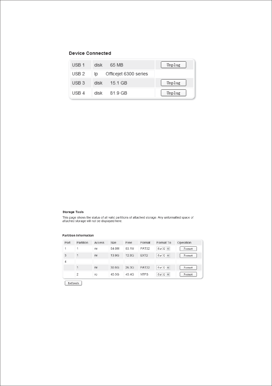 Storage Format FAT32, EXT2 and NTFS (Read Only)