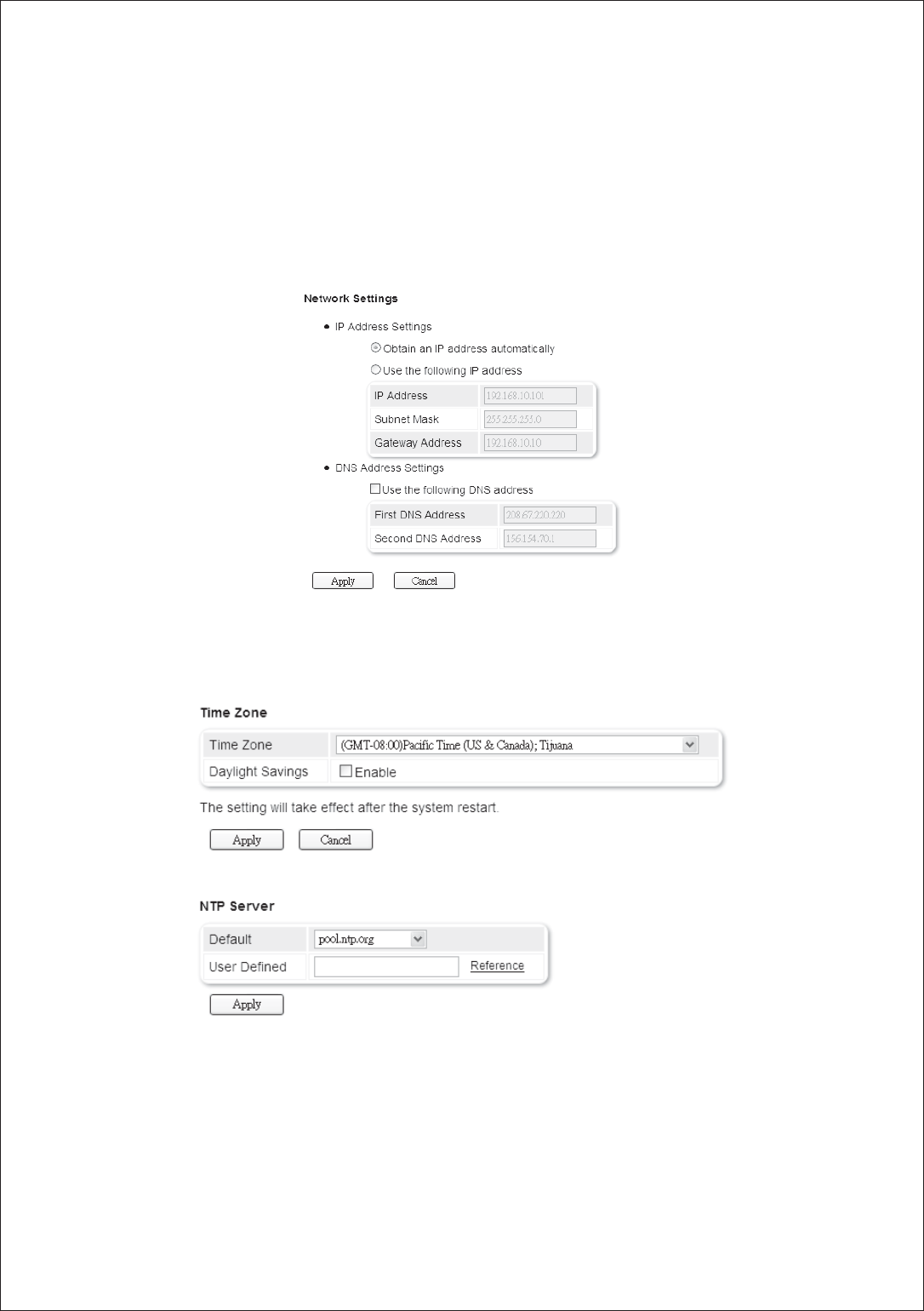 The NUS1000 has a simple and clear web interface enabling easy setup and