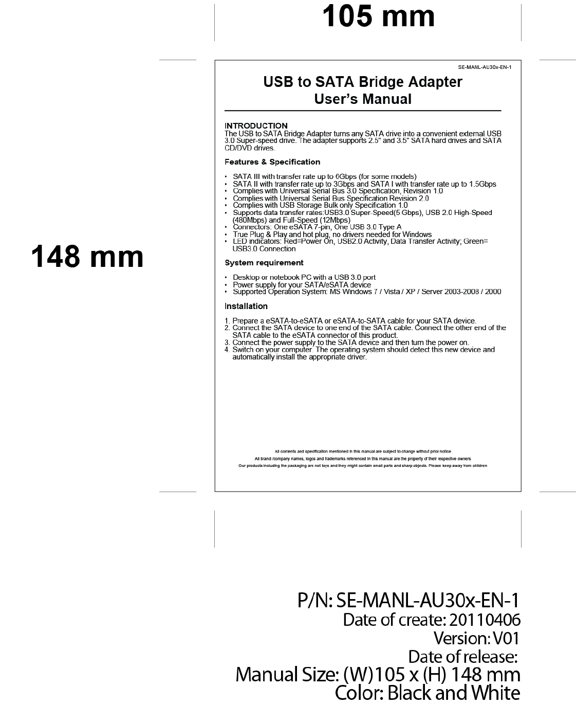 Speed Dragon Multimedia SD-AU303 USB 3.0 to eSATA Bridge Adapter User Manual
