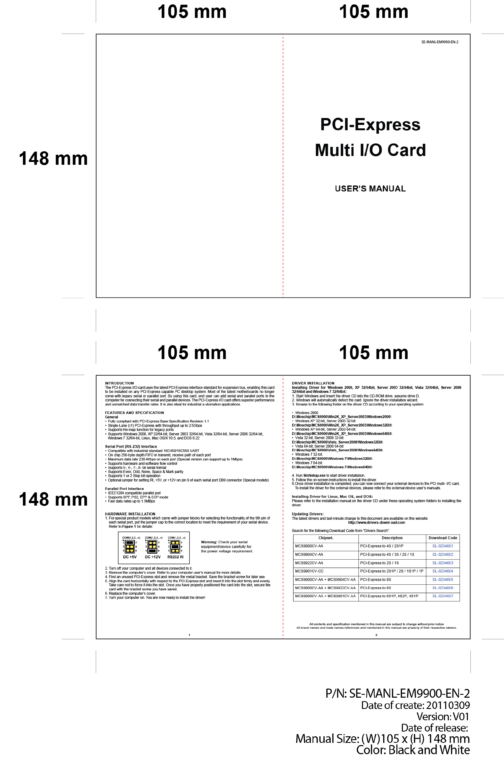 Speed Dragon Multimedia SD-EMT01A PCI-Express I/O Card(4 Serial RS232 Ports Fan-Out Cable) User Manual