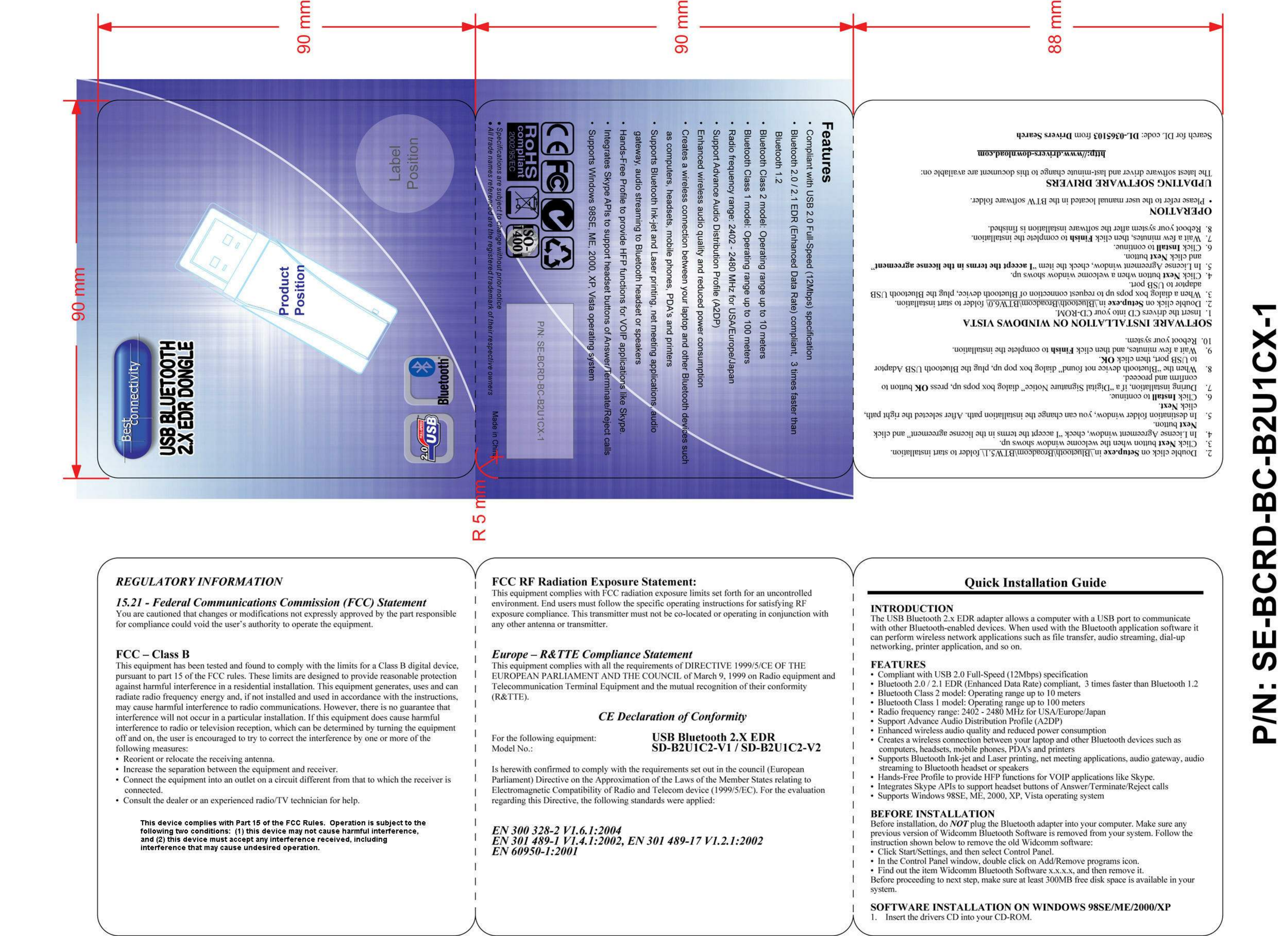 Speed Dragon Multimedia SDB2U1C2V1V2 BLUETOOTH WIRELESS DEVICE User Manual USERS MANUAL