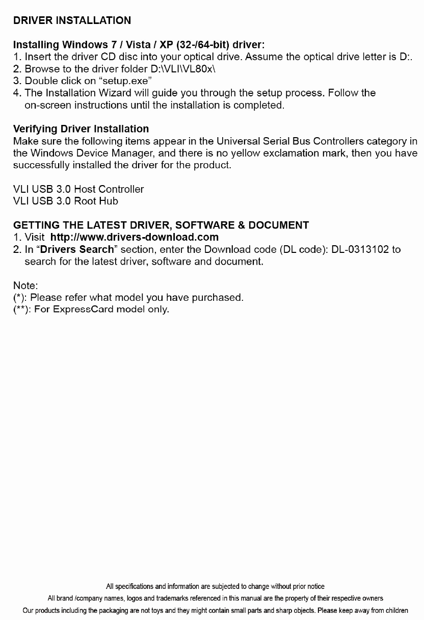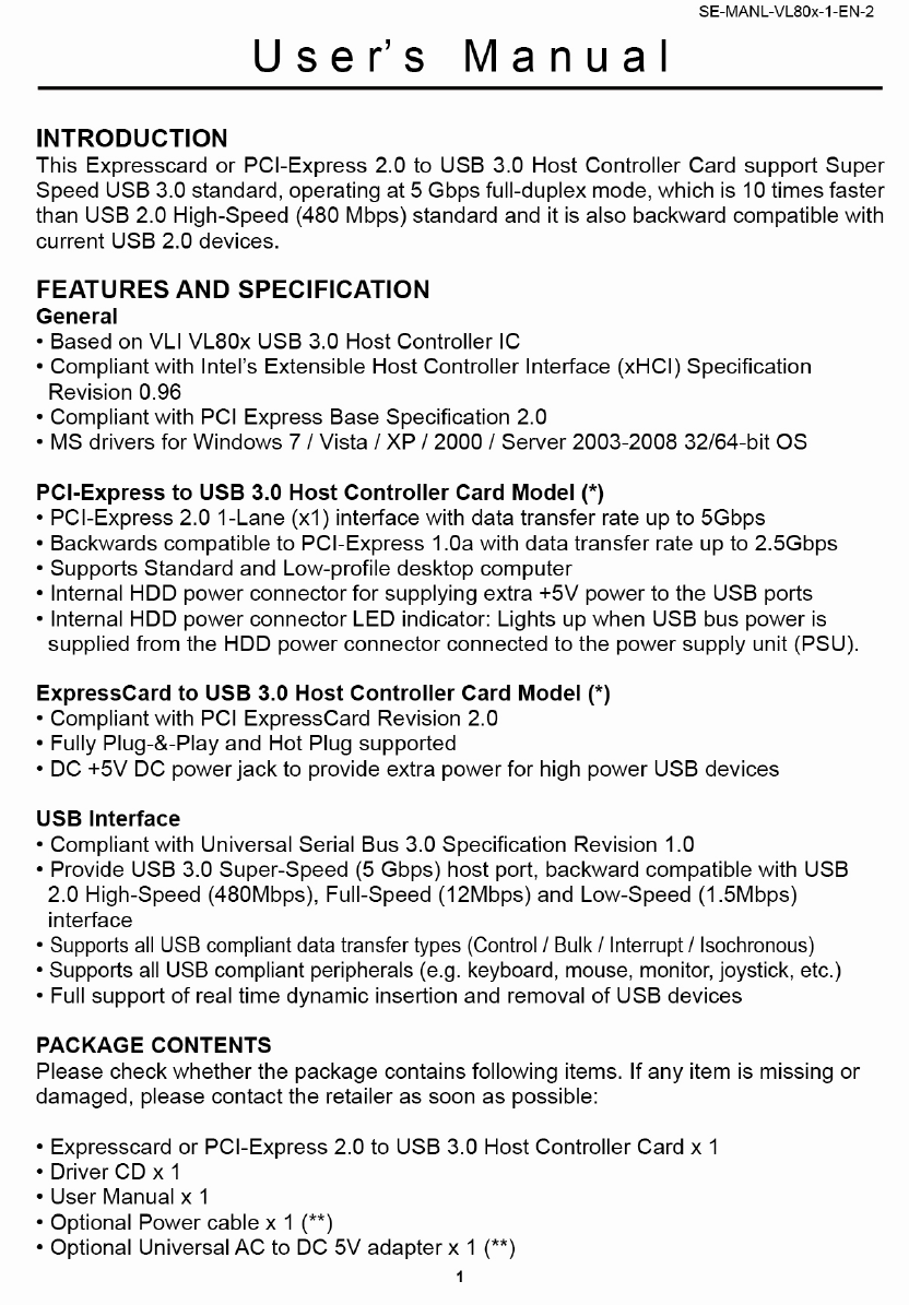 Speed Dragon Multimedia SPEED-EU303C PCI-Express 2.0 4-Port USB 3.0 User Manual