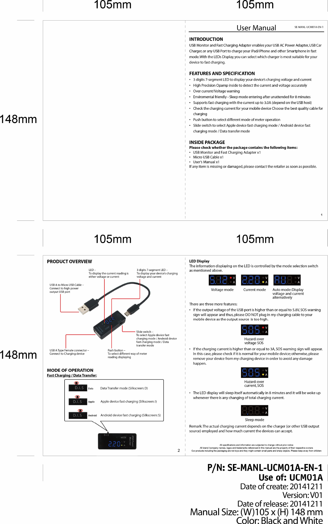 Speed Dragon Multimedia UCM01A USB Monitor and Fast Charging Adapter User Manual