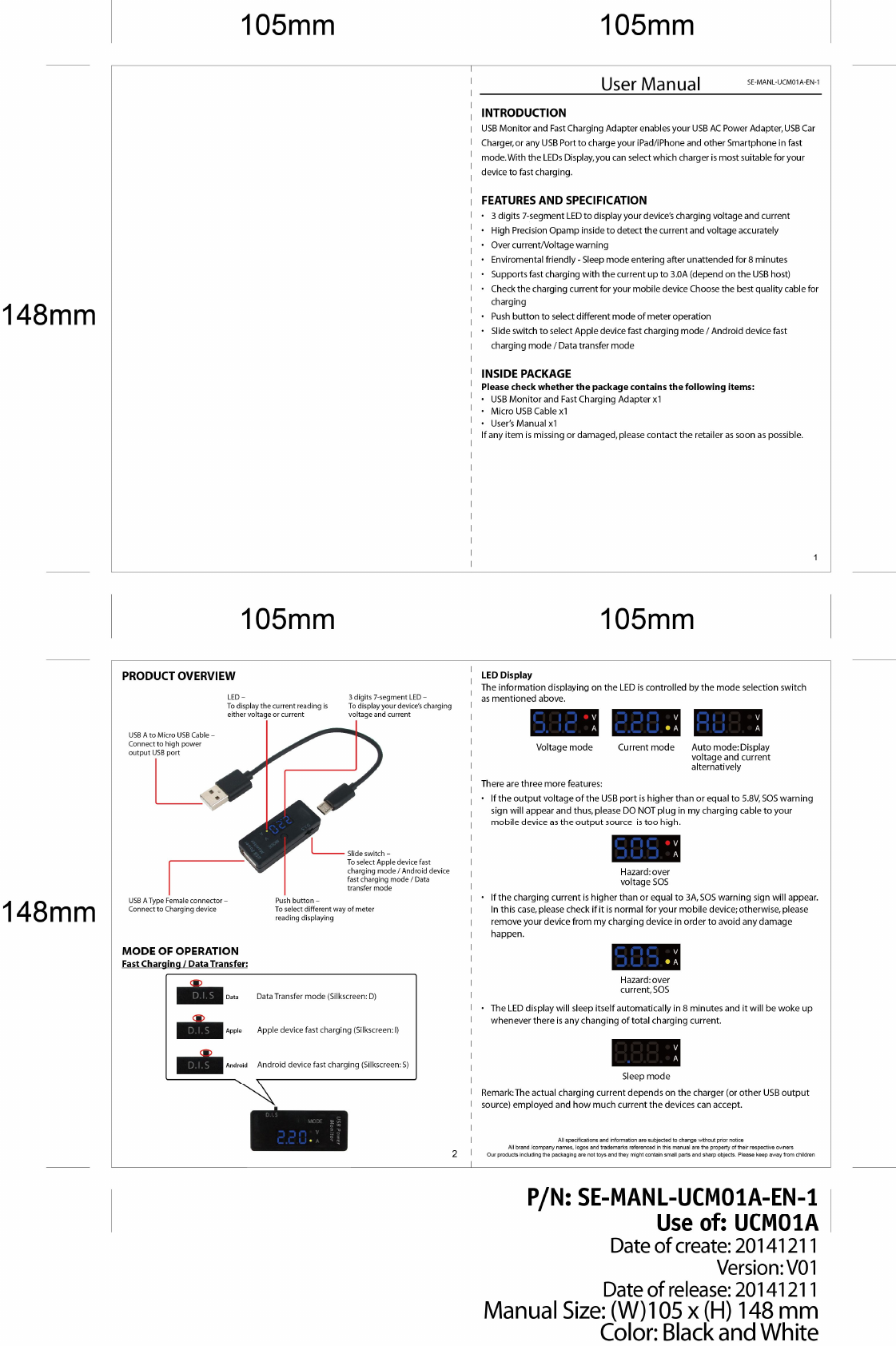 Speed Dragon Multimedia UCM01A USB Monitor and Fast Charging Adapter User Manual